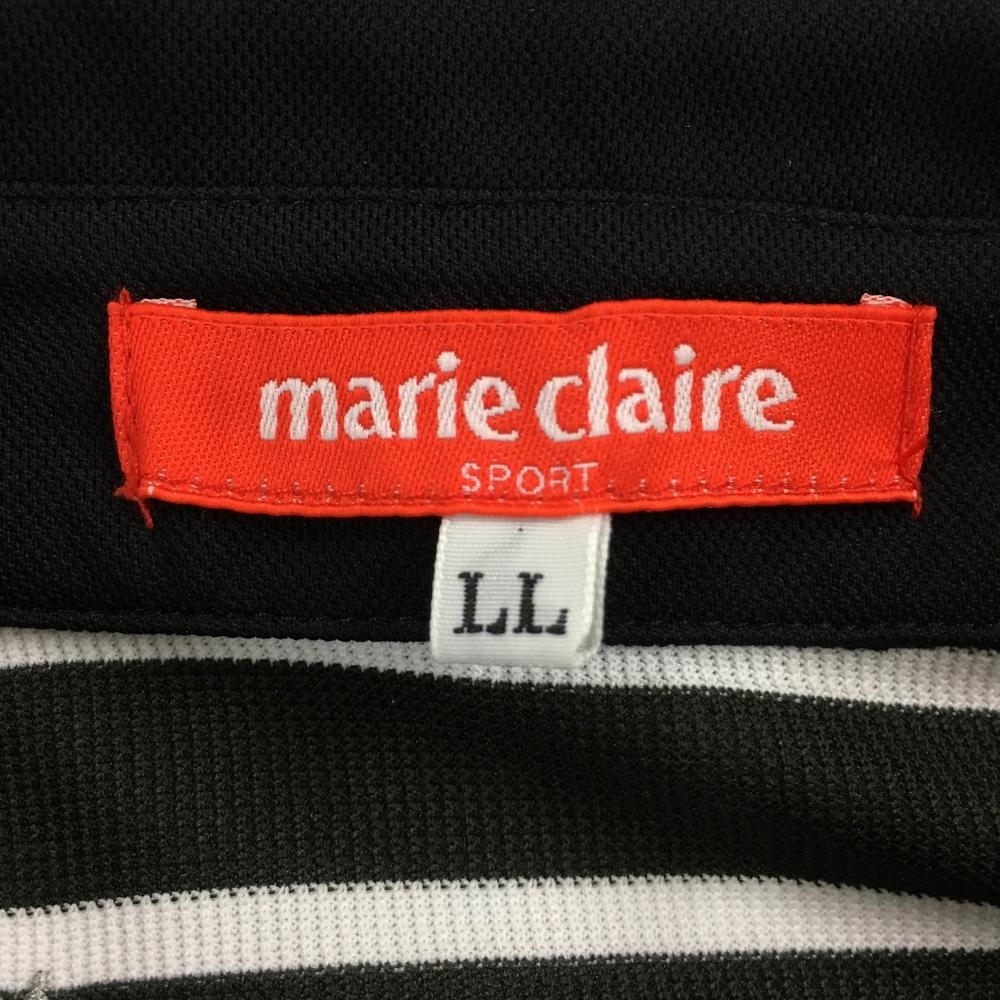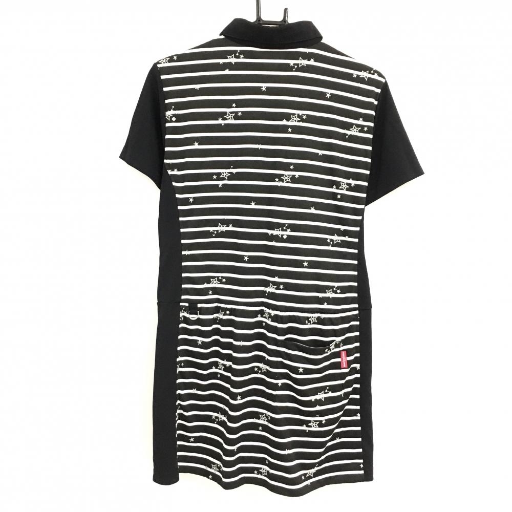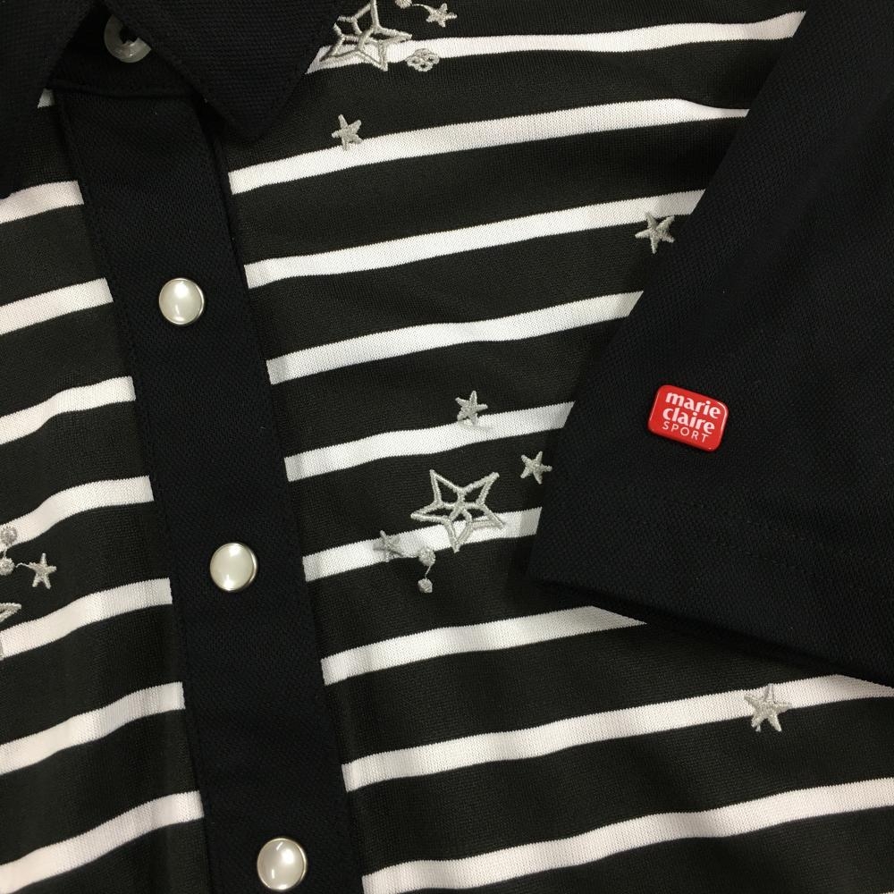 【超美品】マリクレールスポール 半袖ポロワンピース 黒×白 一部ボーダー 星刺しゅう レディース LL ゴルフウェア marie claire