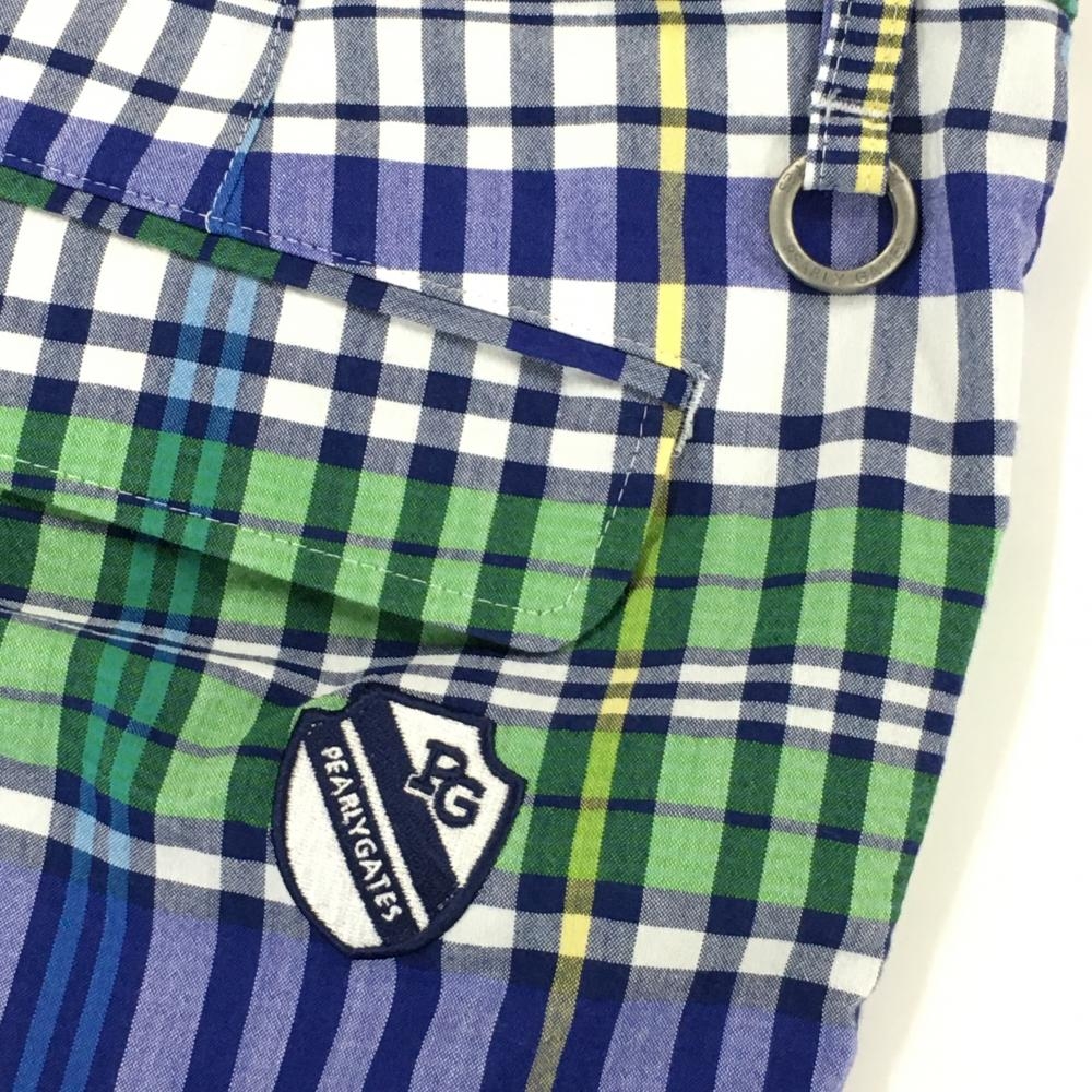 【超美品】パーリーゲイツ ショートパンツ ネイビー×白×グリーン チェック 内側ニコちゃん レディース 0(S) ゴルフウェア PEARLY GATES