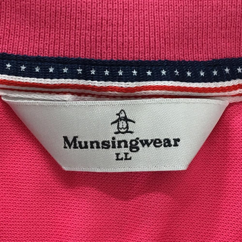 【超美品】マンシングウェア 半袖ポロシャツ ピンク×白 ペンギンワッペン 星条旗 レディース LL ゴルフウェア Munsingwear