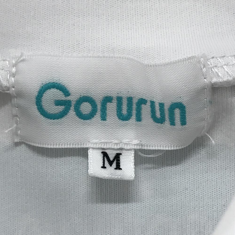 【超美品】ゴルラン 半袖ハイネックシャツ 白×ミントグリーン フロントロゴ ストレッチ レディース M ゴルフウェア Gorurun