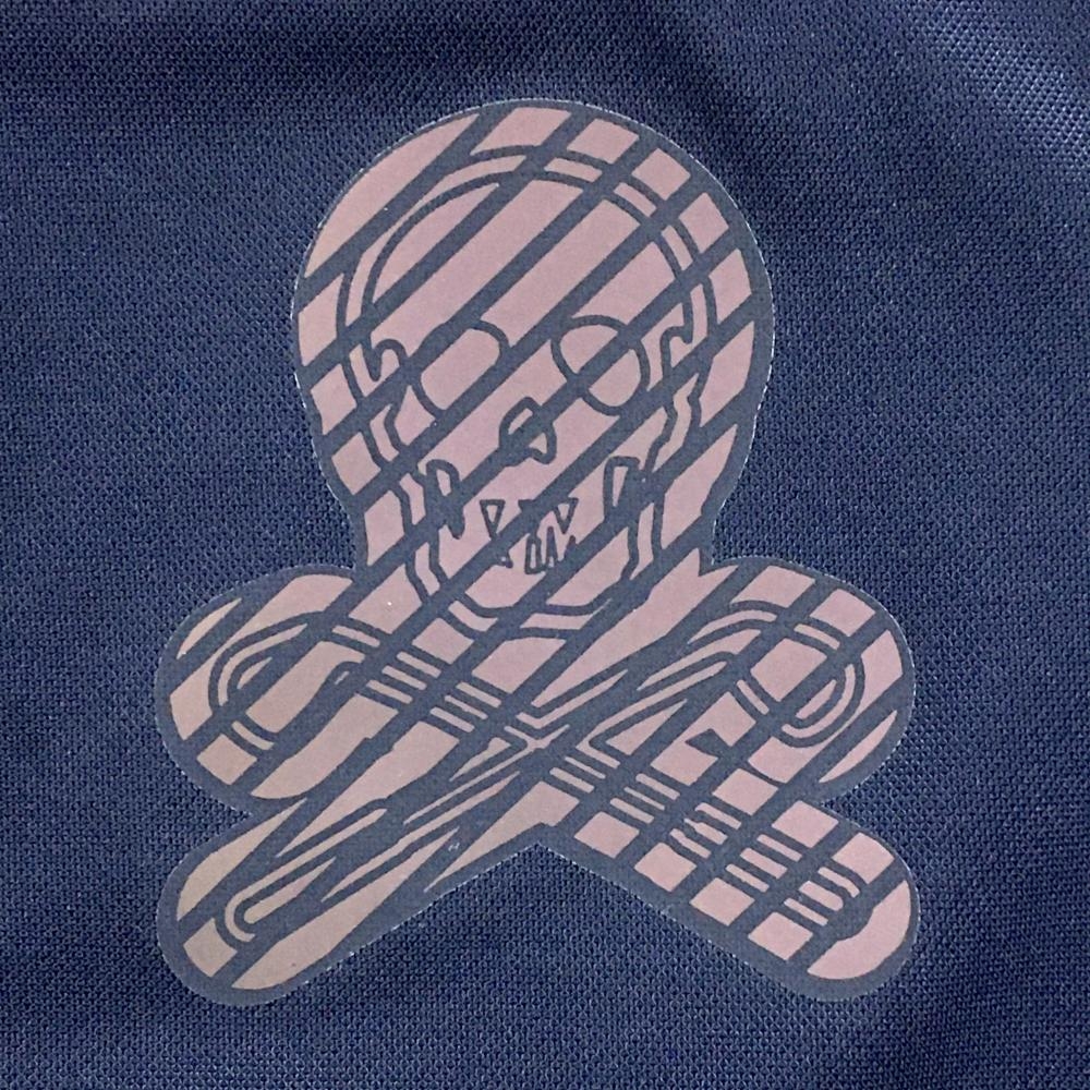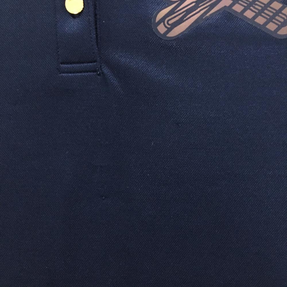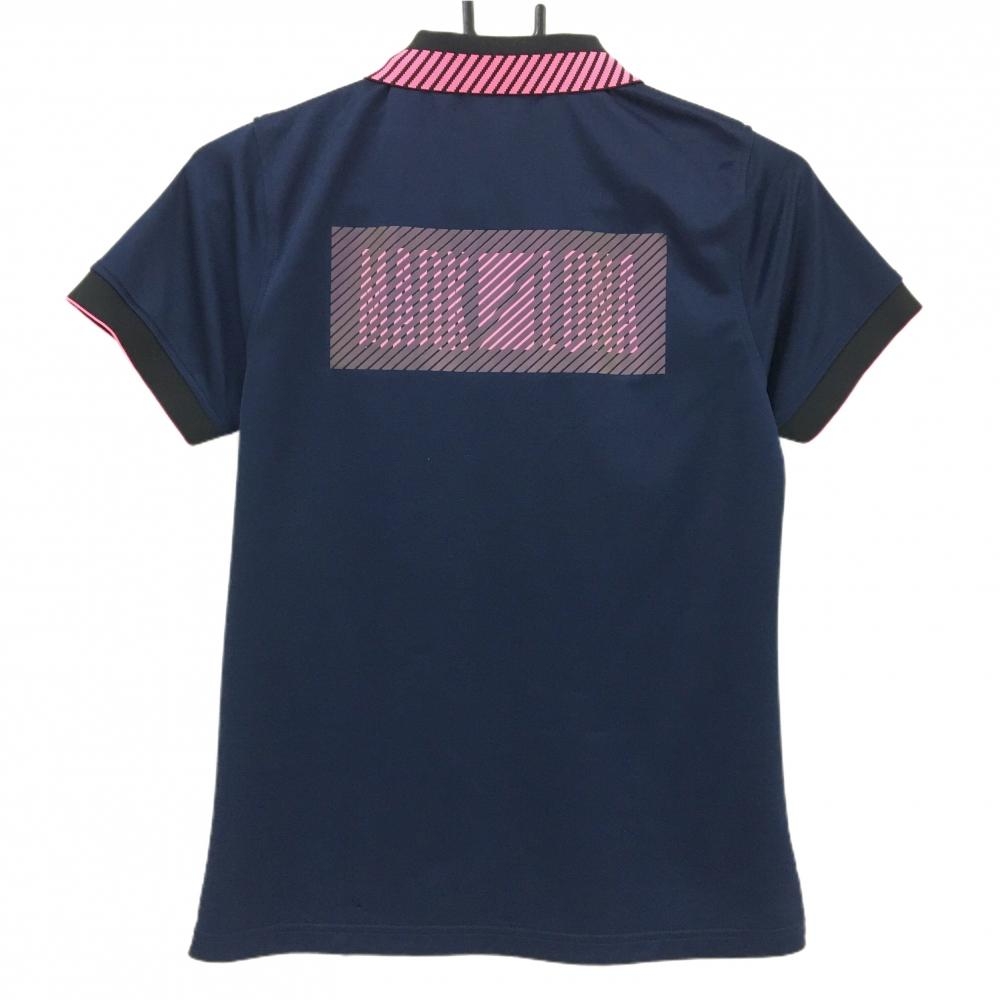 マークアンドロナ 半袖ポロシャツ ネイビー×蛍光ピンク スカル 襟ライン レディース M ゴルフウェア MARK&LONA