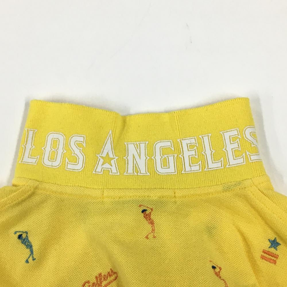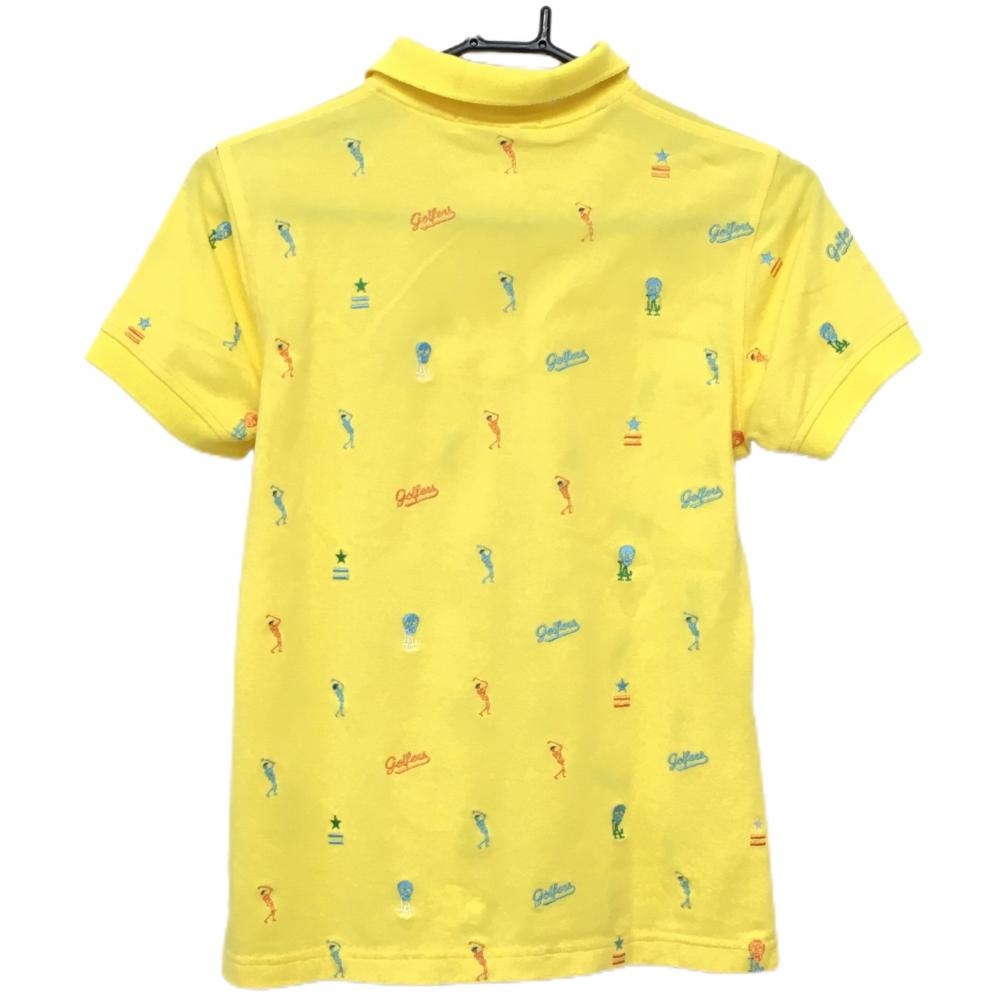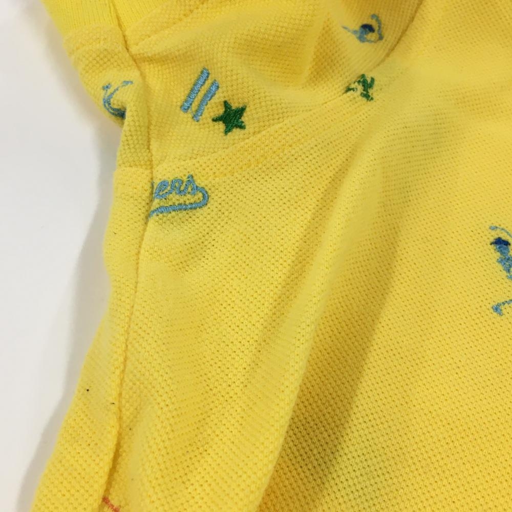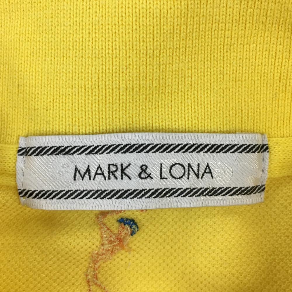 【美品】マークアンドロナ 半袖ポロシャツ イエロー×ライトブルー 刺しゅう総柄 襟裏プリント レディース M ゴルフウェア MARK&LONA