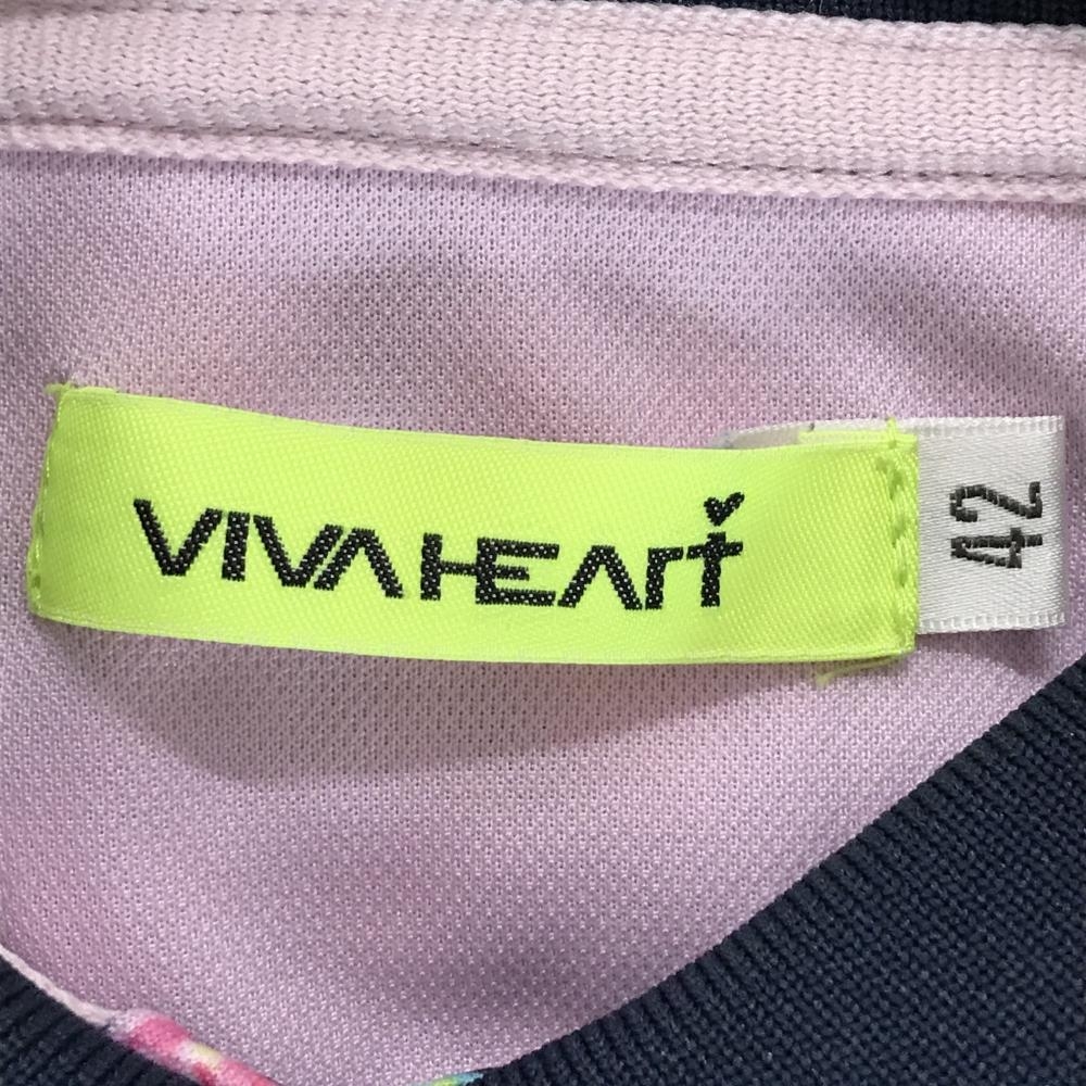 【美品】ビバハート 半袖ポロシャツ ネイビー×ピンク×グリーン系 花柄 レディース 42(L) ゴルフウェア VIVA HEART