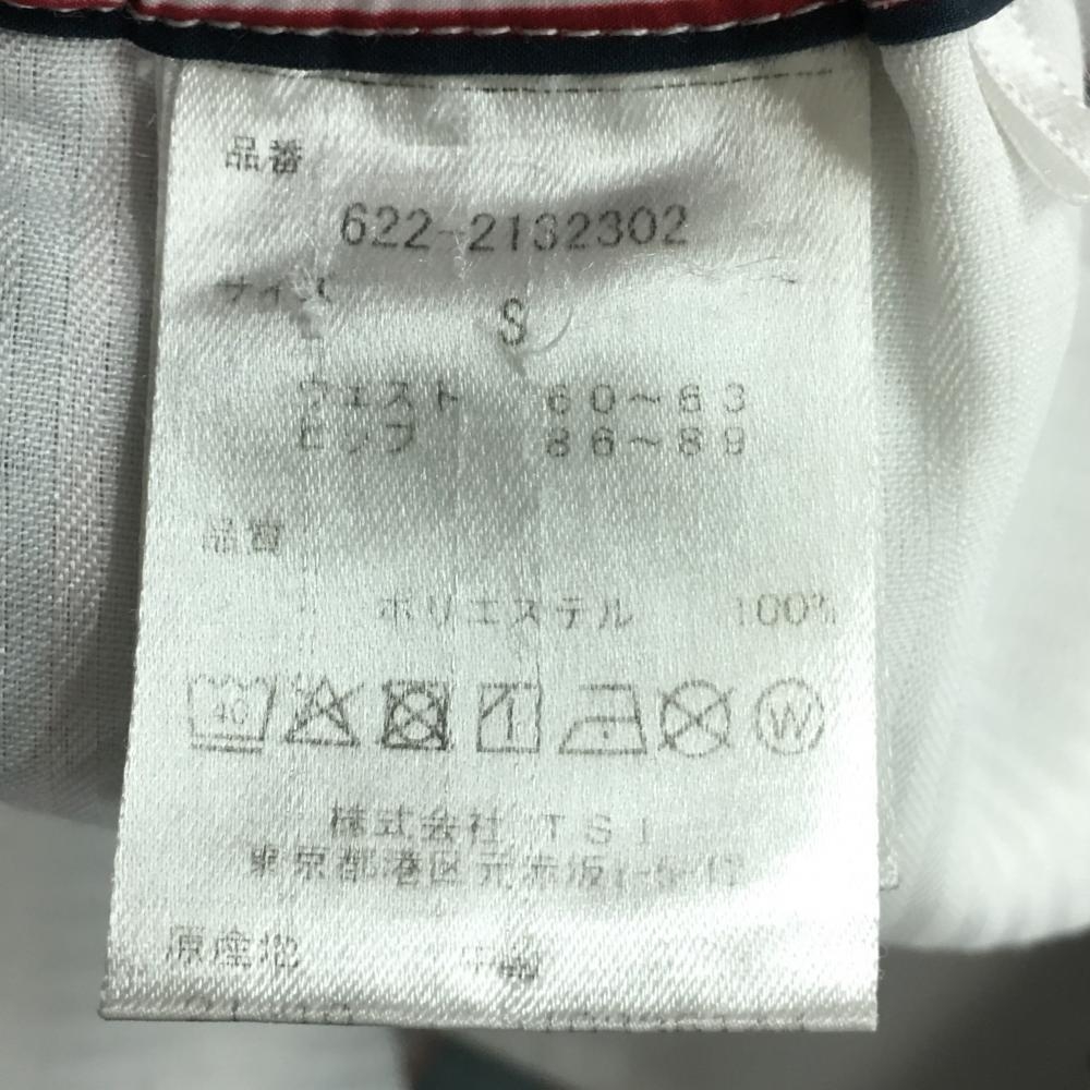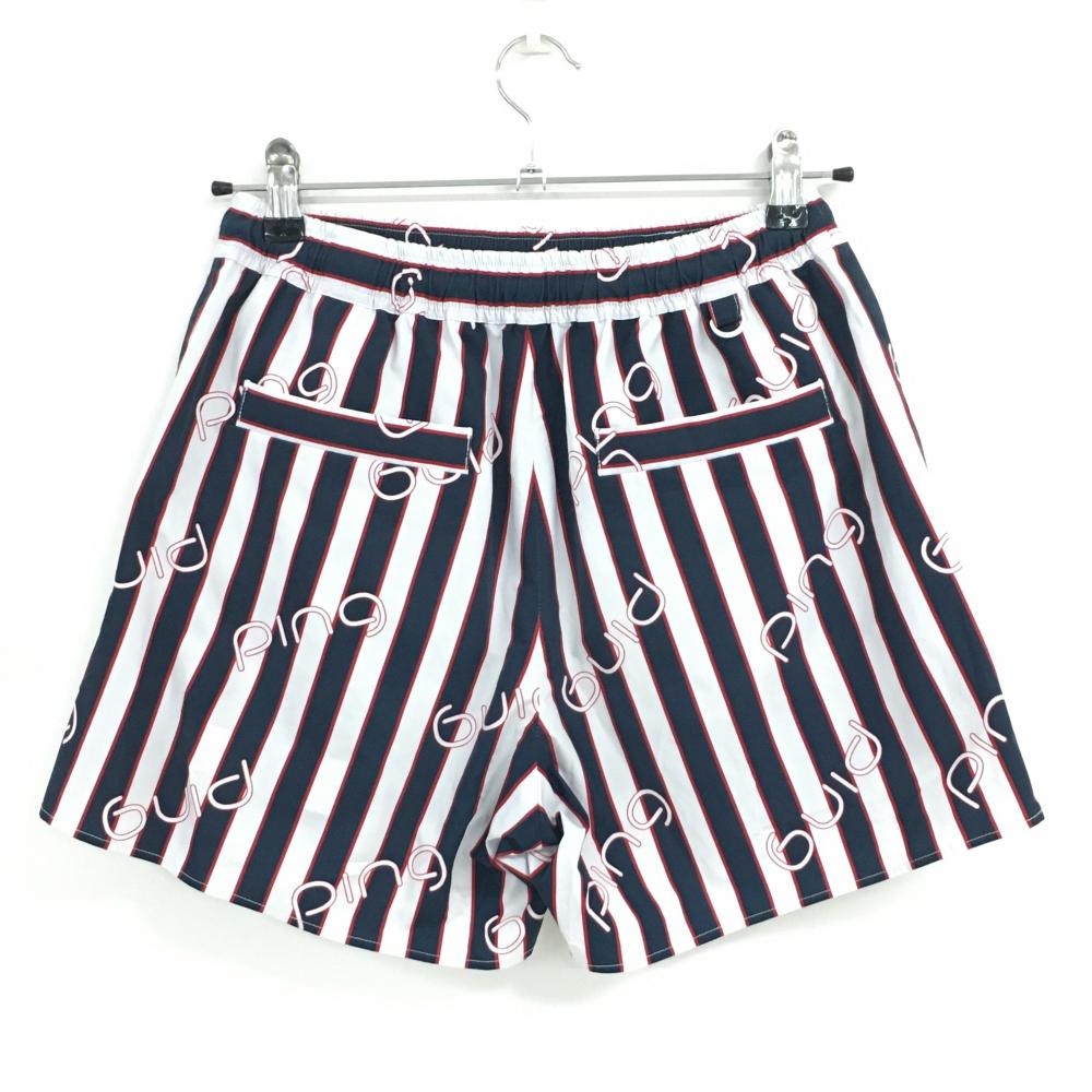 【超美品】ピン ハーフパンツ 白×ネイビー×レッド ストライプ ロゴ レディース S ゴルフウェア PING