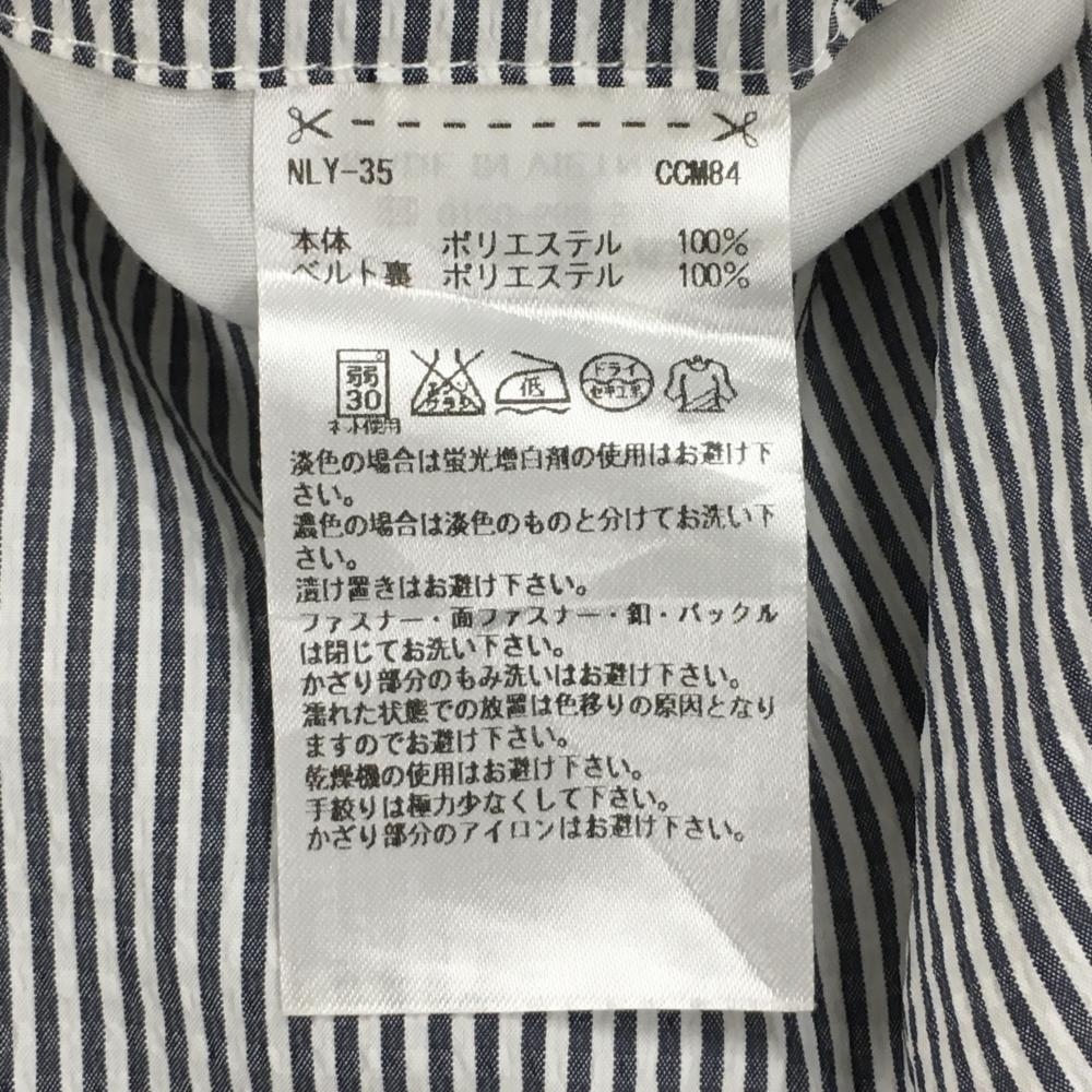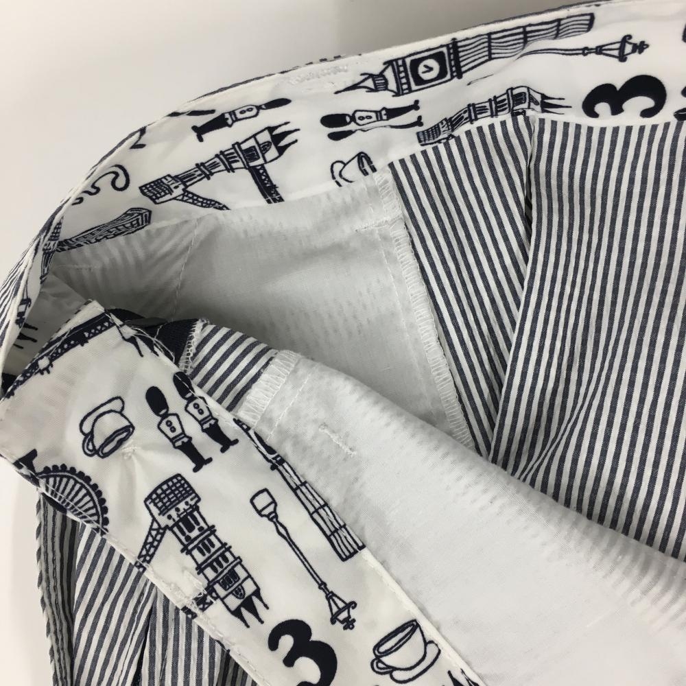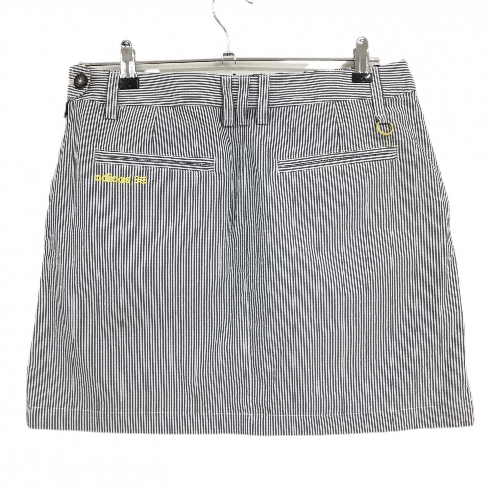 アディダス スカート 白×ネイビー ストライプ サッカー生地 バックロゴ刺しゅう レディース OT/XG(XL) ゴルフウェア adidas