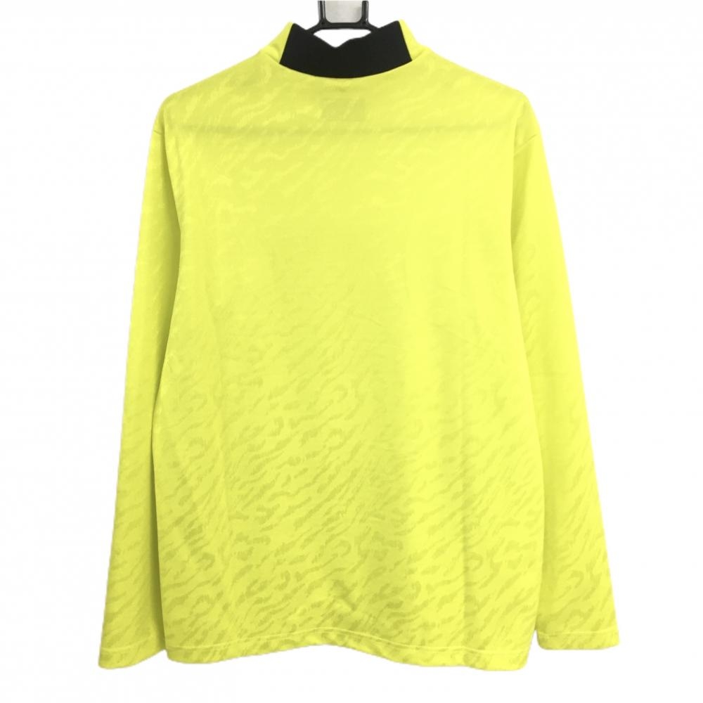 【超美品】ニューバランスゴルフ 長袖ハイネックシャツ イエロー アニマル調地模様 ネック一部ゴム メンズ 6(XL) ゴルフウェア New Balance