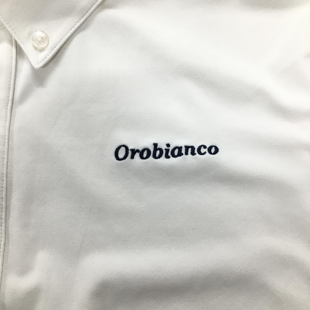 【美品】オロビアンコ 長袖ポロシャツ 白 ロゴ刺しゅう ボタンダウン メンズ L ゴルフウェア OROBIANCO