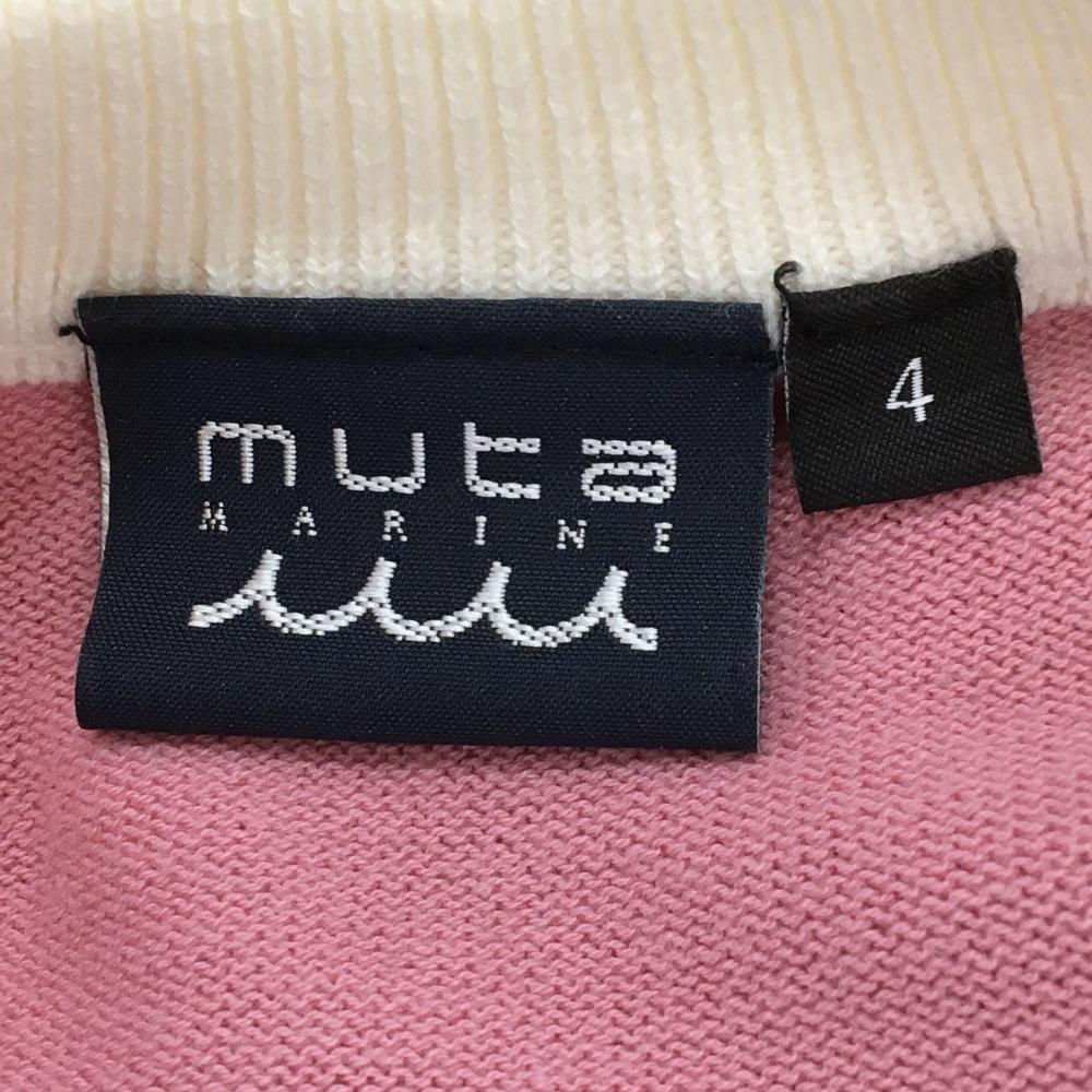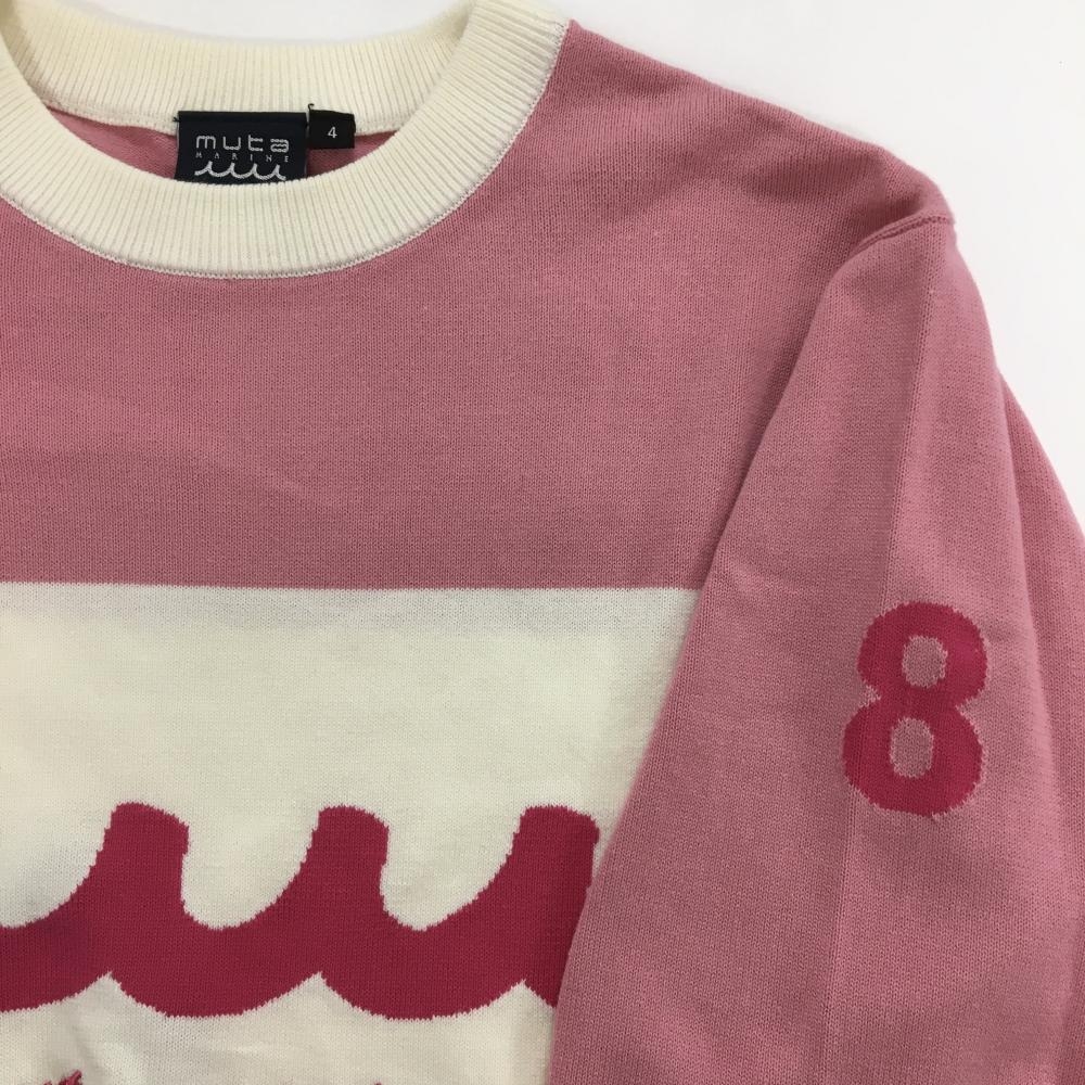 【超美品】ムータマリン セーター ピンク 胸元ロゴ コットン混 メンズ 4(S) ゴルフウェア muta