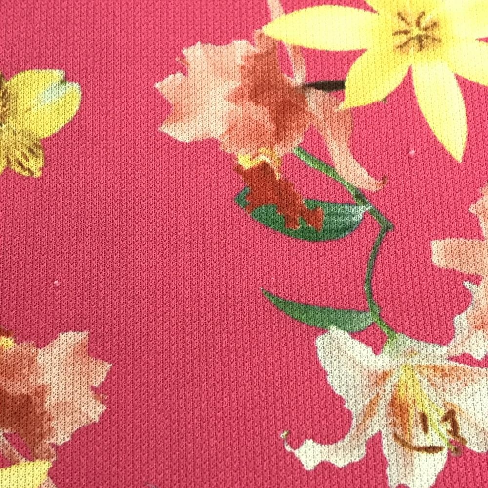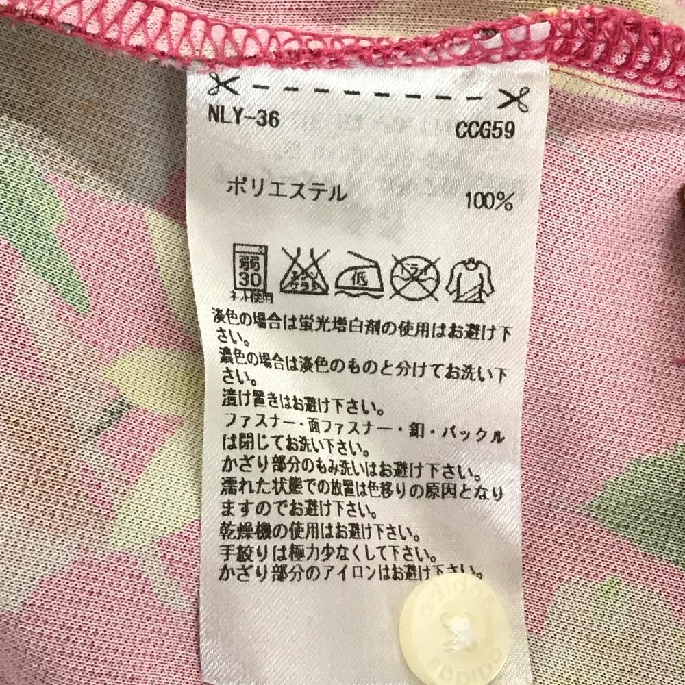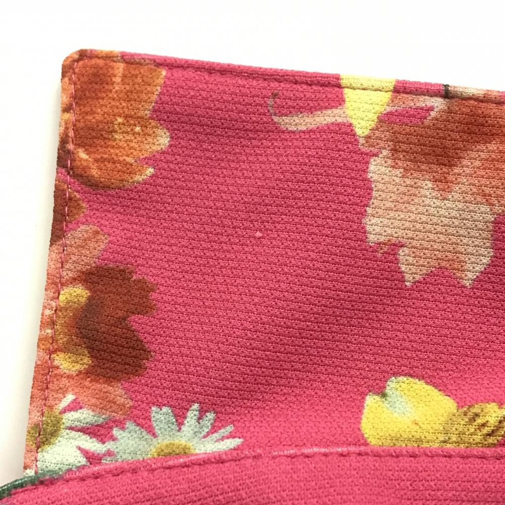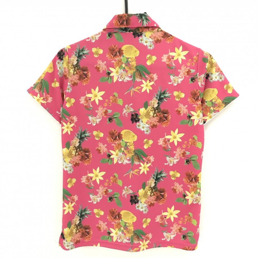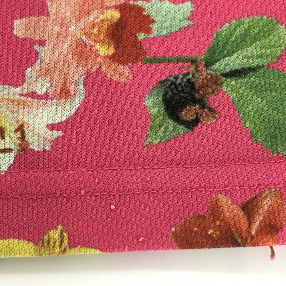 アディダス 半袖ポロシャツ ピンク×マルチカラー 花柄 ロゴ刺しゅう レディース M/M ゴルフウェア adidas