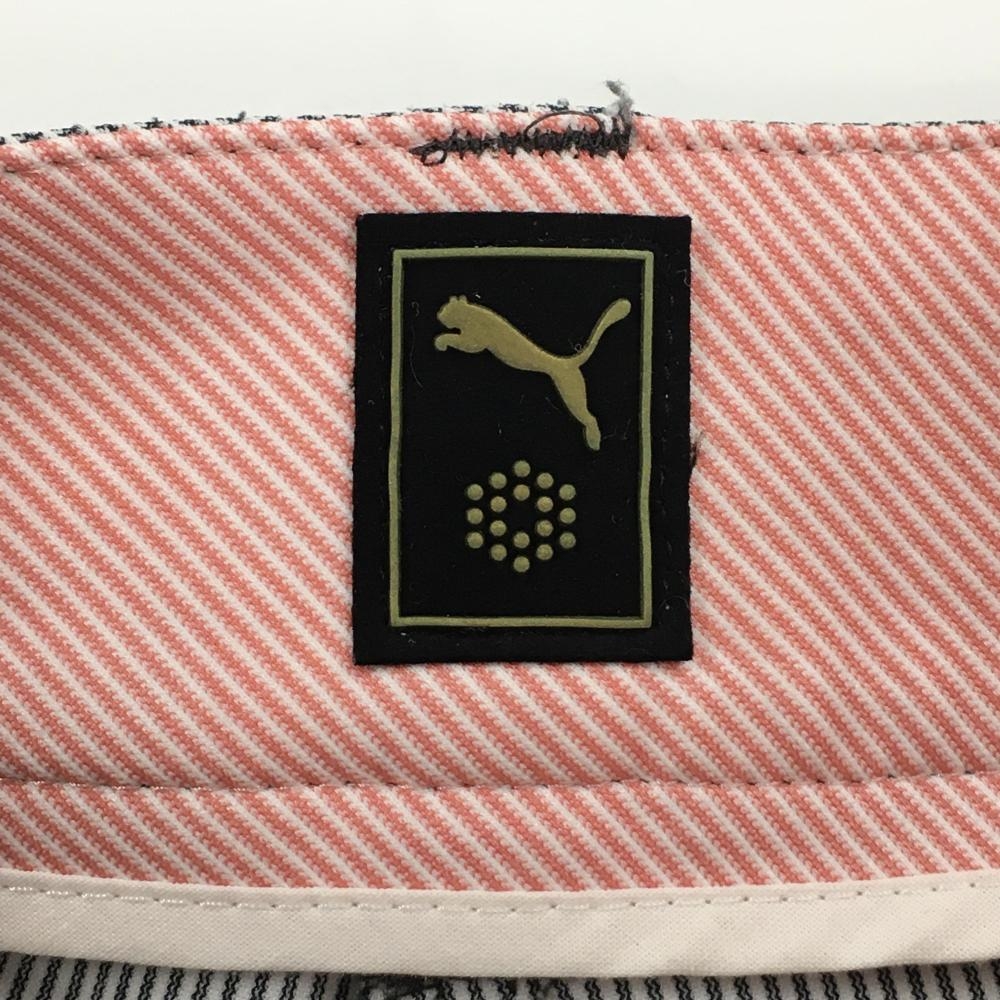 【美品】プーマ ショートパンツ 白×ネイビー ストライプ 裾ロゴ レディース L ゴルフウェア PUMA