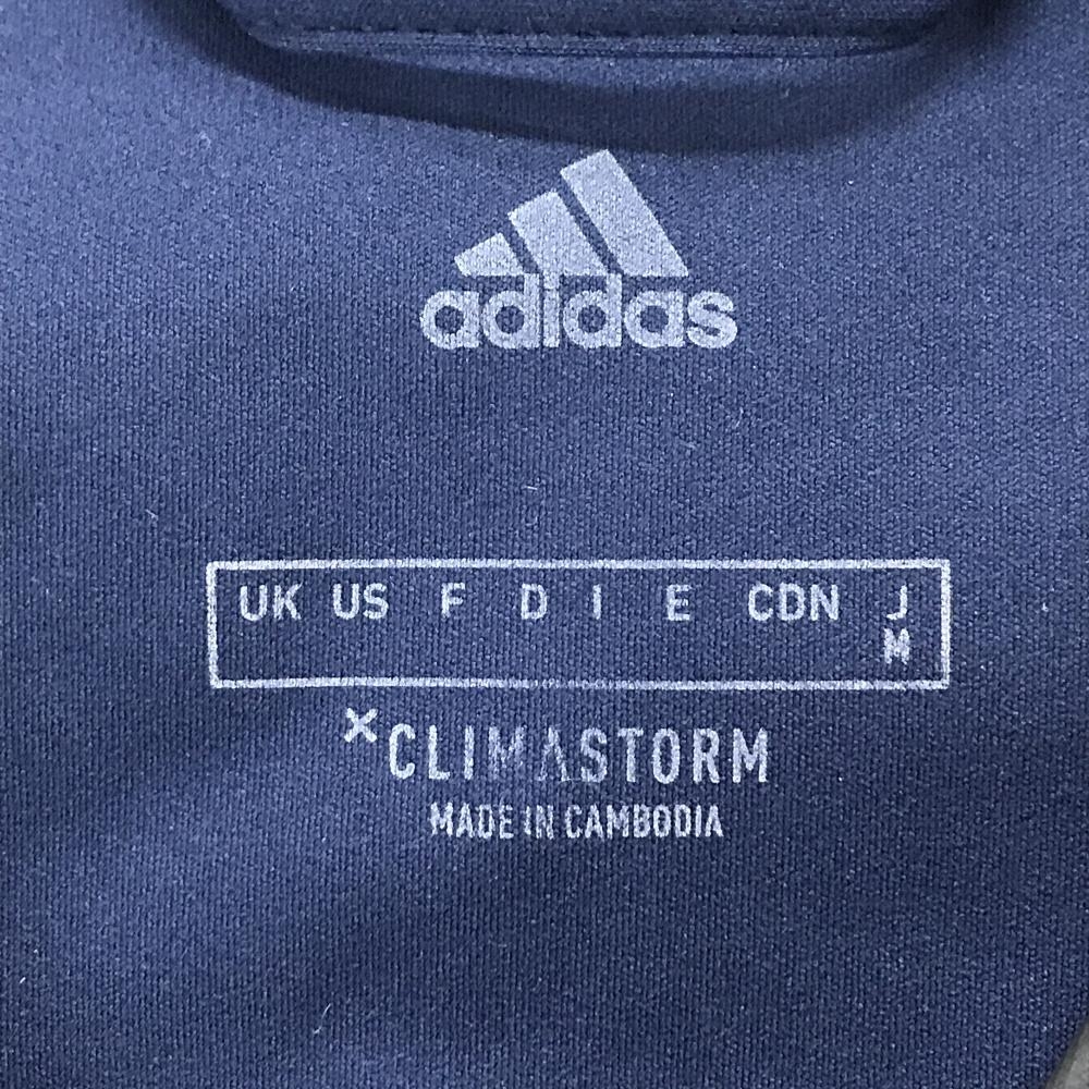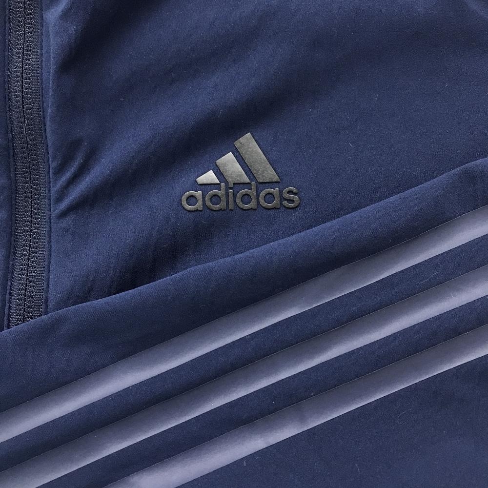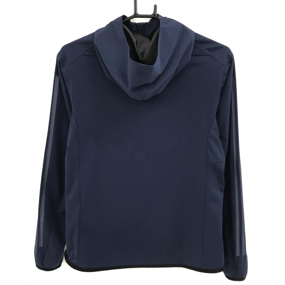 【美品】アディダス フード付きジャケット ネイビー 袖3ライン レディース M ゴルフウェア adidas