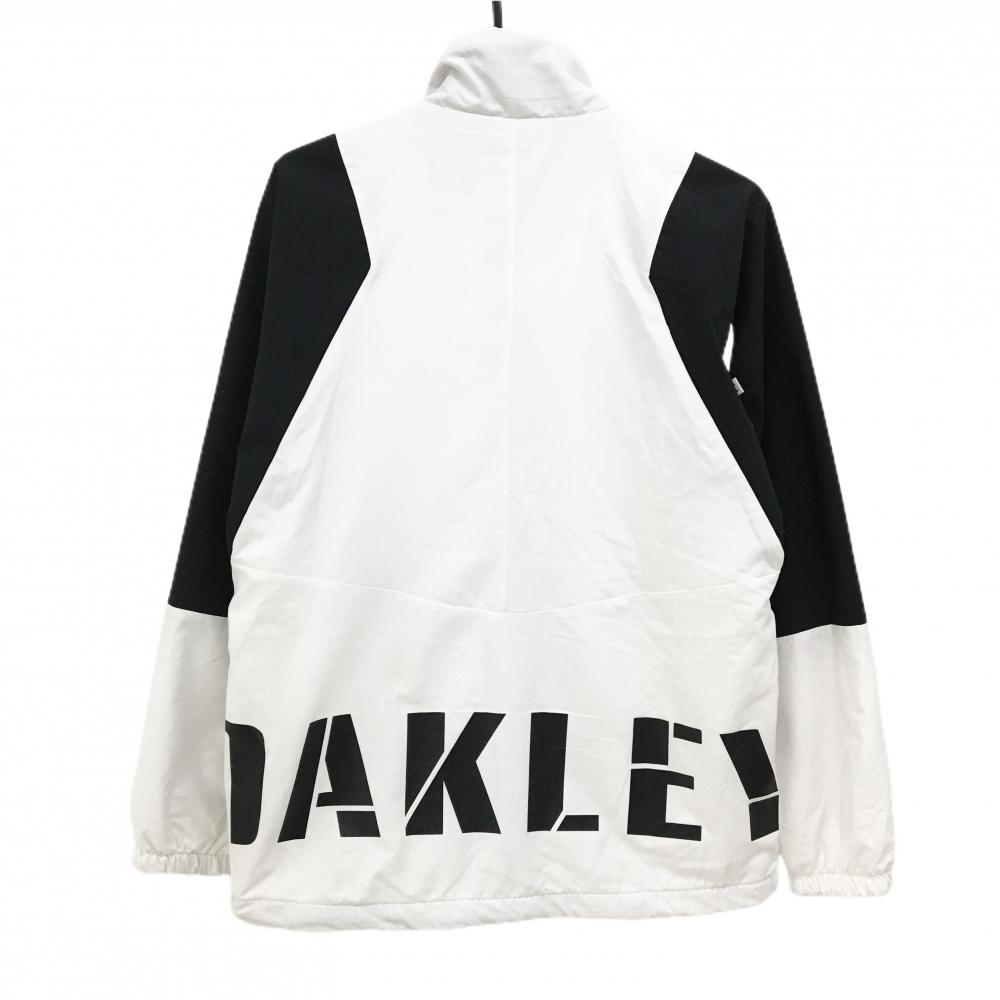 【美品】オークリー ジャケット 白×黒 バックロゴ ネック内側ベロア調 メンズ M ゴルフウェア Oakley