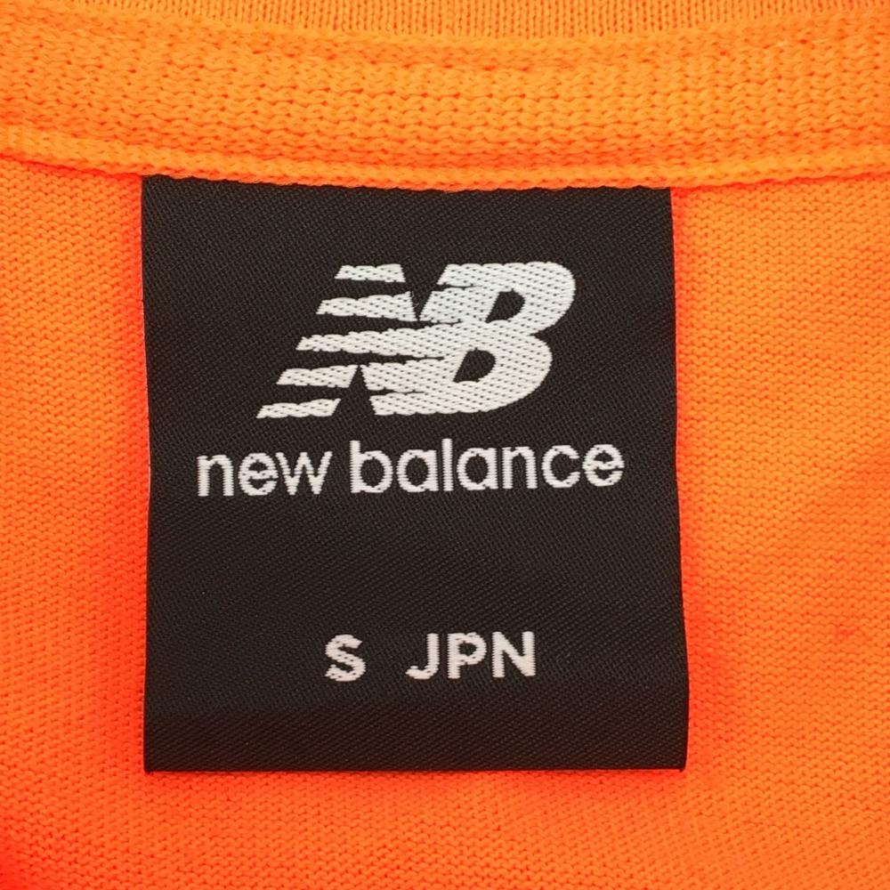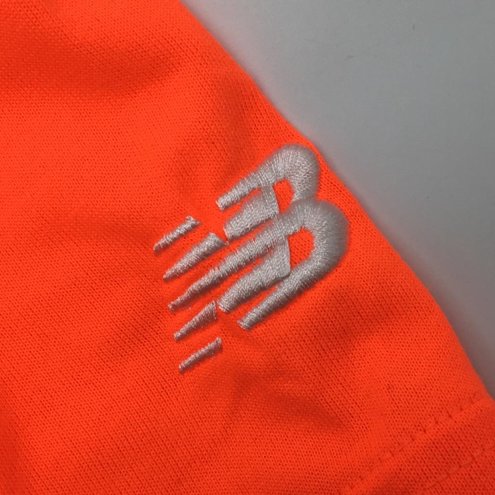 【美品】ニューバランス 長袖ハイネックシャツ 蛍光オレンジ ストレッチ ネックロゴ メンズ S ゴルフウェア New Balance