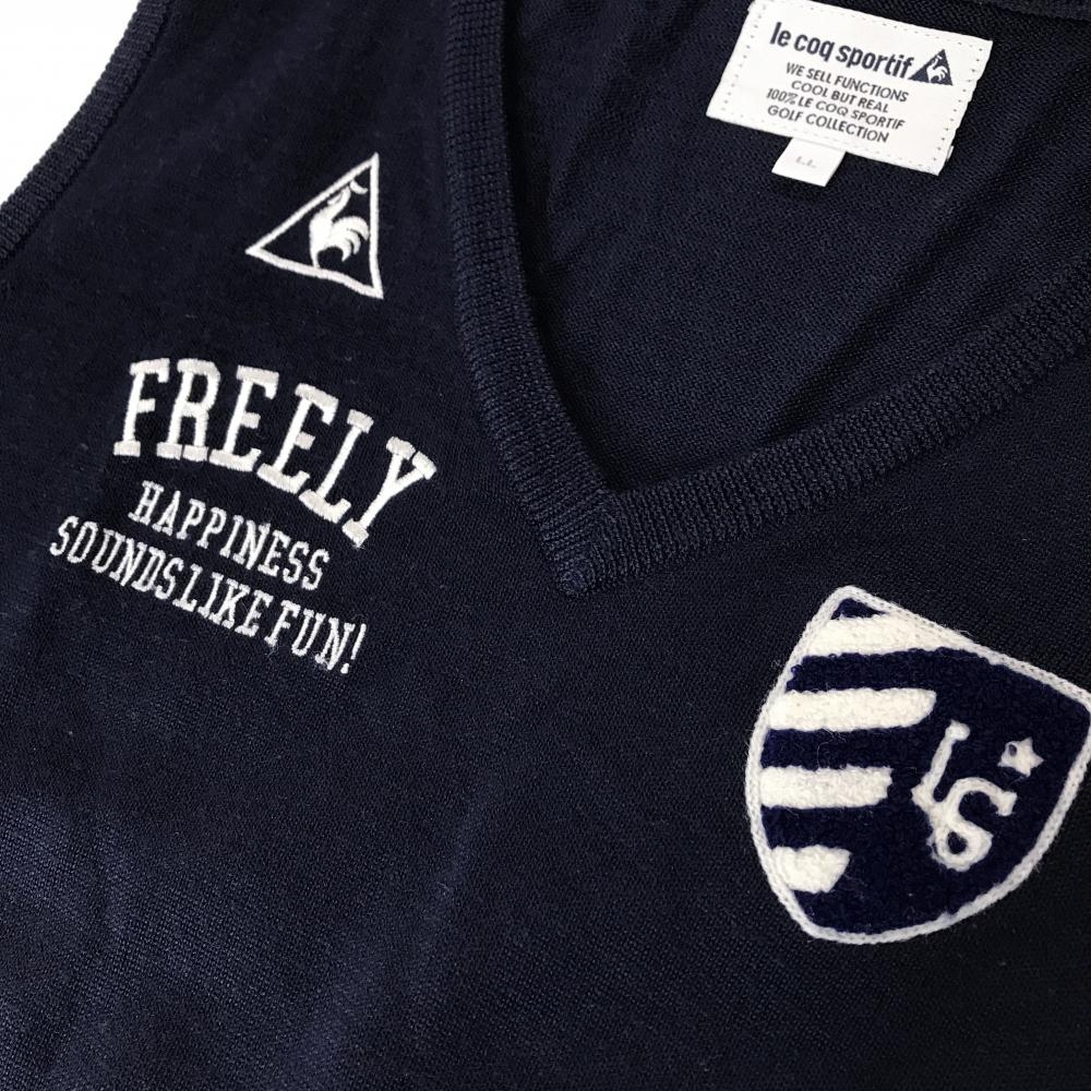 【美品】ルコックゴルフ ニットベスト ネイビー Vネック ロゴ刺しゅう レディース LL ゴルフウェア le coq sportif