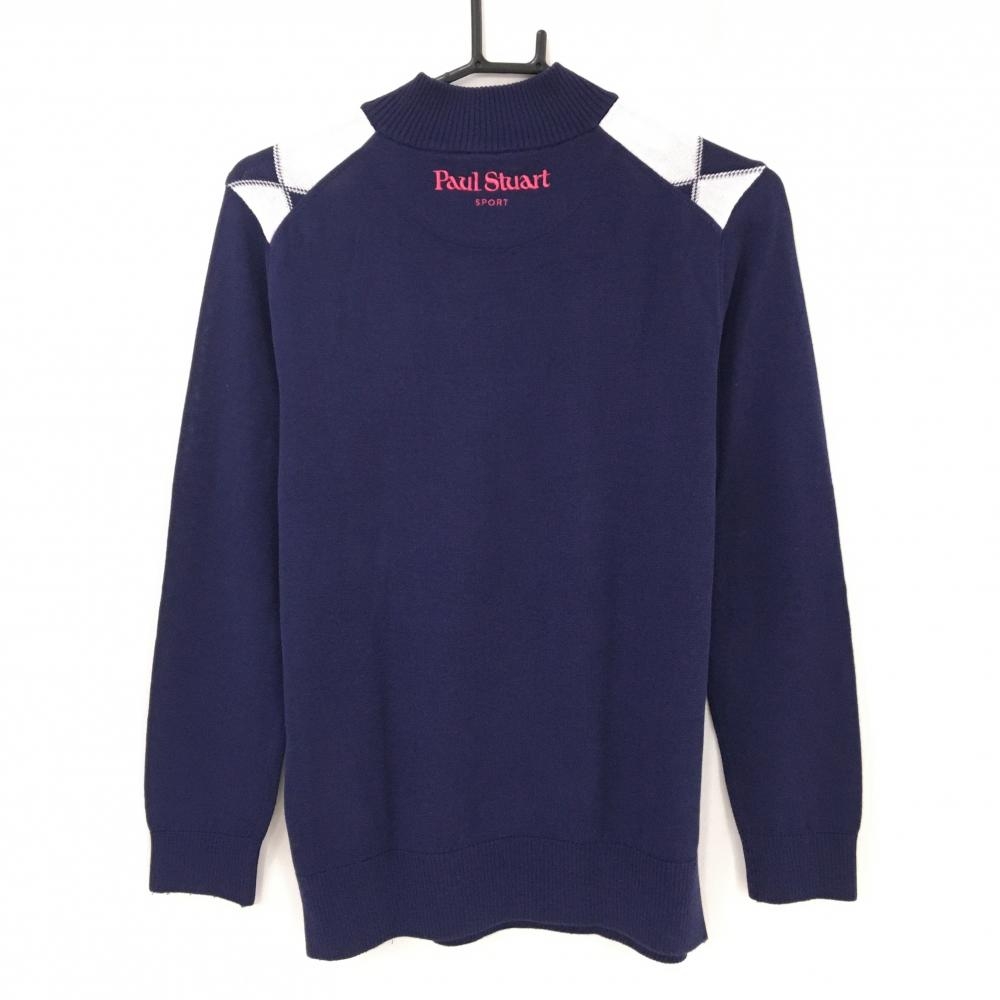 【超美品】ポールスチュアートスポーツ ハイネックセーター ネイビー×白 ハーフジップ レディース LL ゴルフウェア Paul Stuart SPORT
