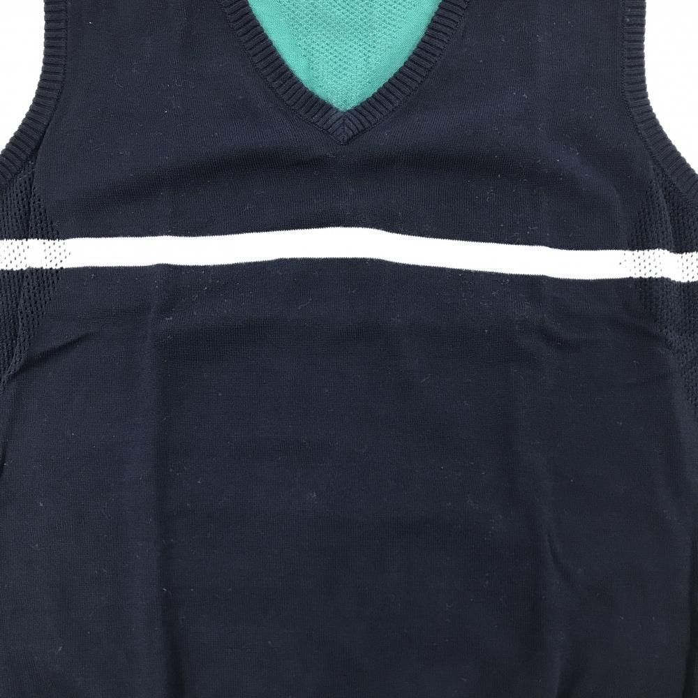 【美品】テーラーメイド ニットベスト ネイビー×白×グリーン Vネック 腹部ライン レディース L ゴルフウェア TaylorMade