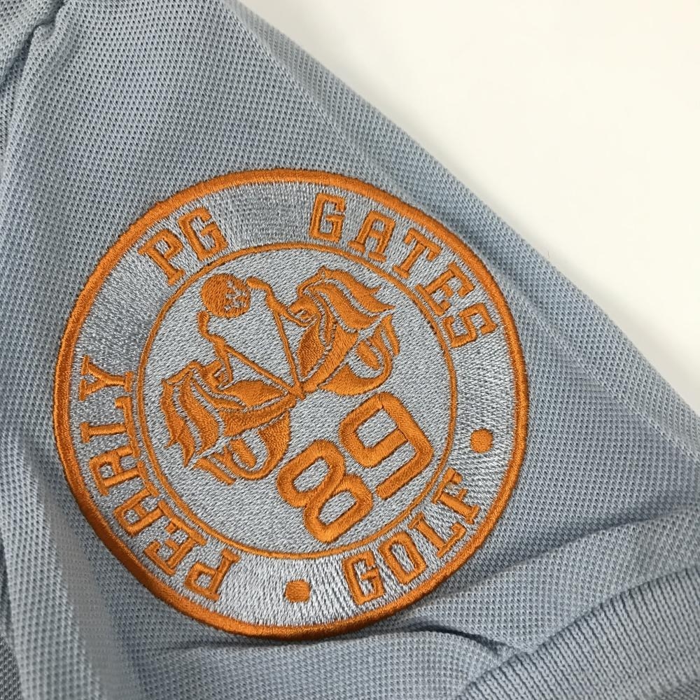 【新品】パーリーゲイツ 半袖ポロシャツ ライトブルー×オレンジ 袖ワッペン レディース 1(M) ゴルフウェア PEARLY GATES