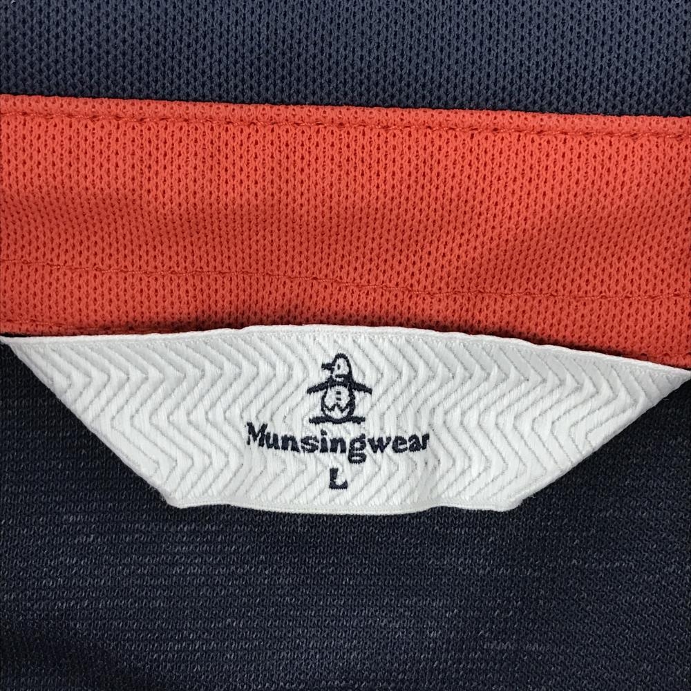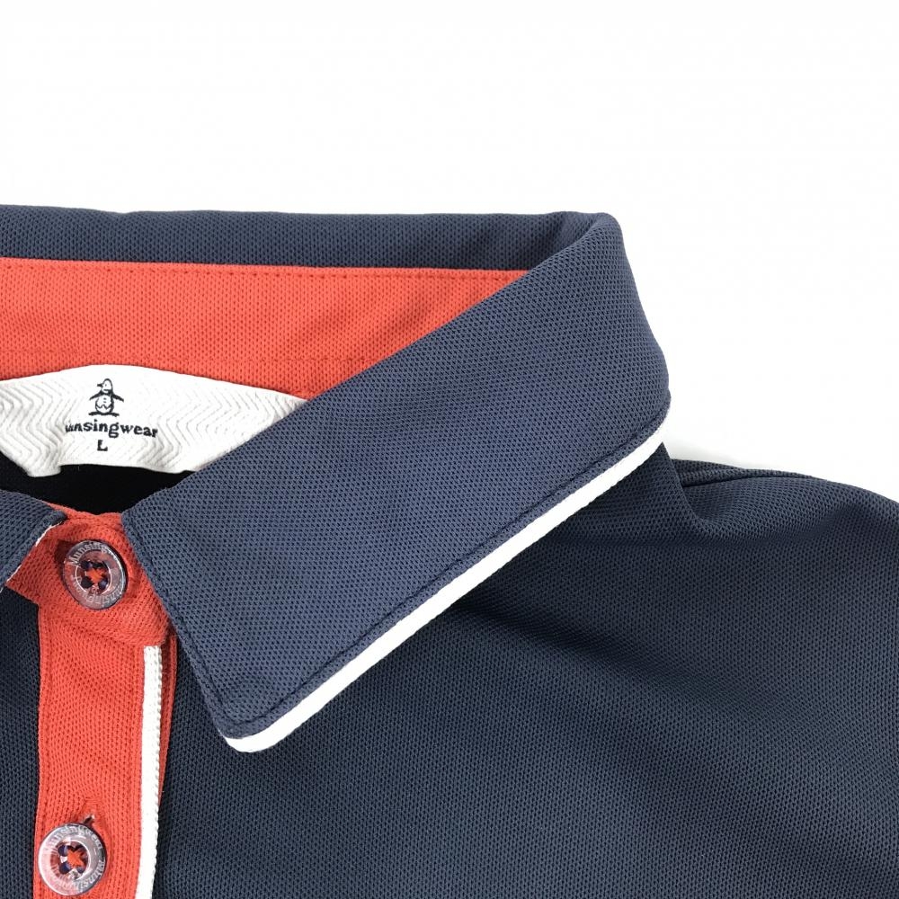 マンシングウェア 半袖ポロシャツ ネイビー×レッド×白 胸ロゴ刺しゅう レディース L ゴルフウェア Munsingwear