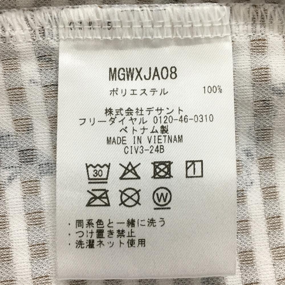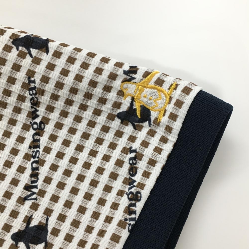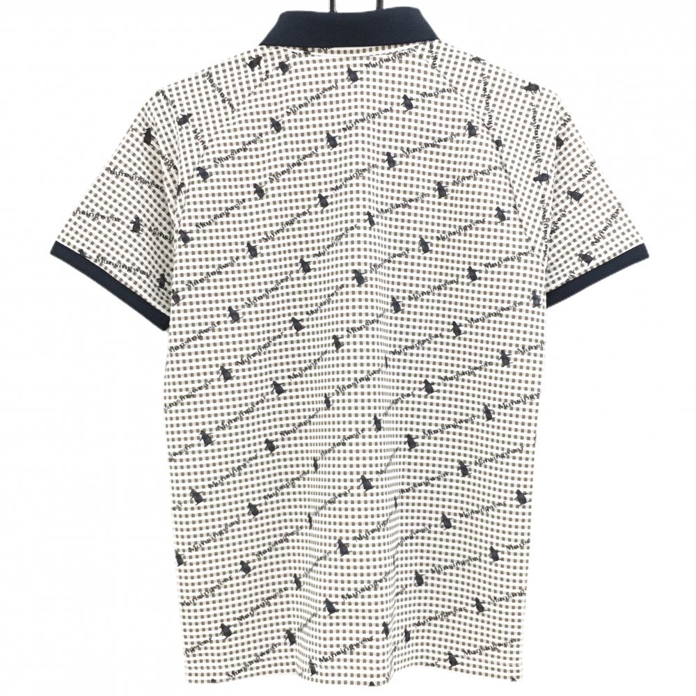 【超美品】マンシングウェア 半袖ポロシャツ 白×ネイビー チェック織生地 ロゴ総柄 レディース L ゴルフウェア Munsingwear