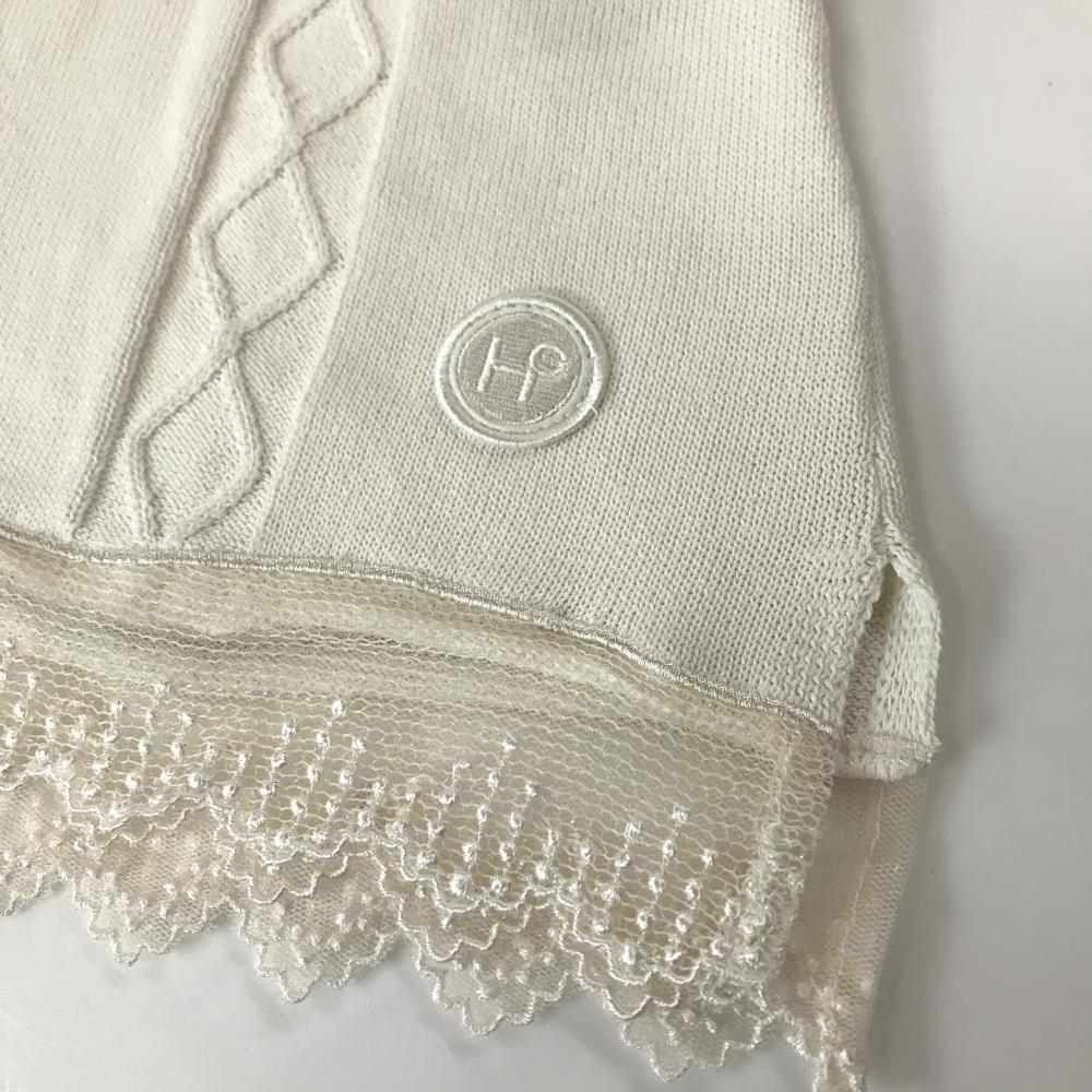 【超美品】ヒールクリーク ニットベスト 白 裾レース Vネック ロゴ刺しゅう レディース 40(M) ゴルフウェア Heal Creek