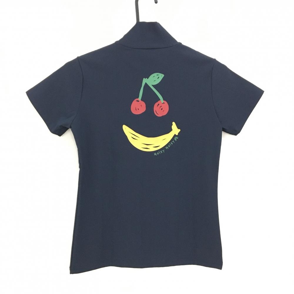 【超美品】ノイジーノイジー 半袖ハイネックシャツ ネイビー バックプリント サクランボ レディース 38(S) ゴルフウェア M・U SPORTS