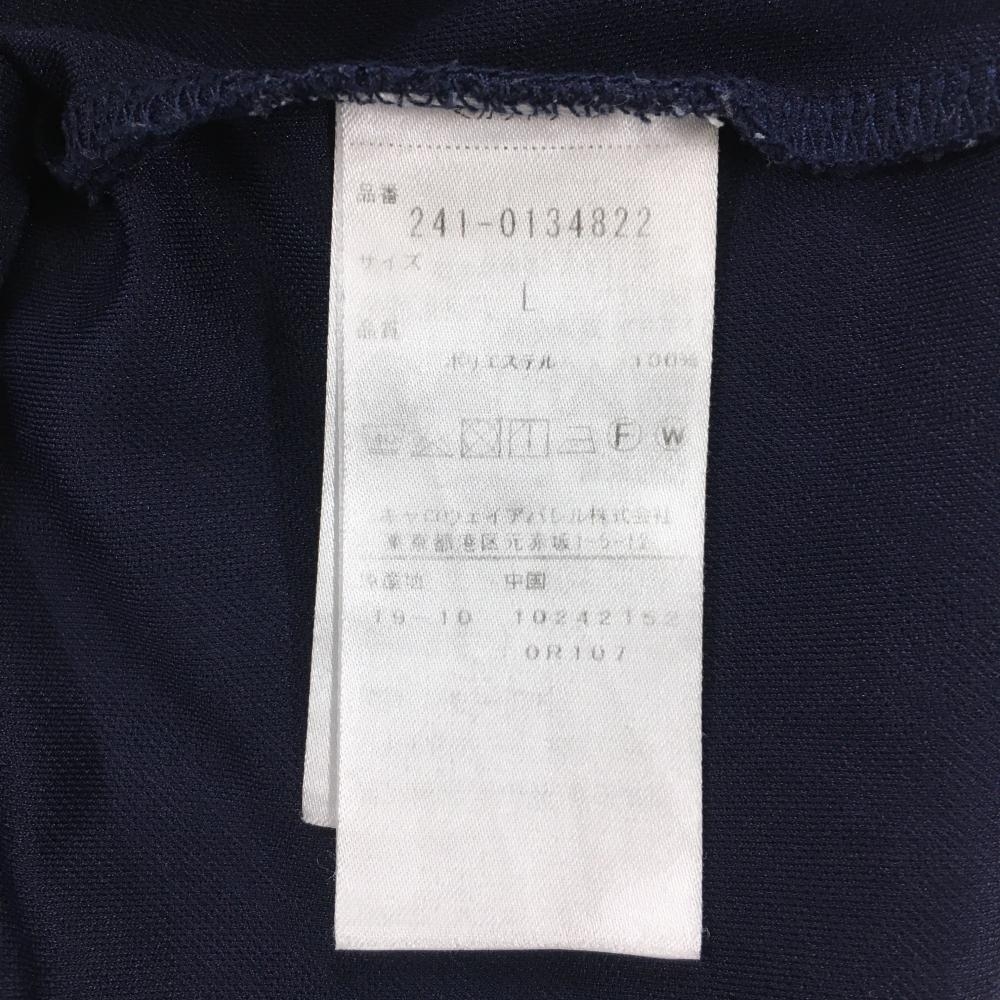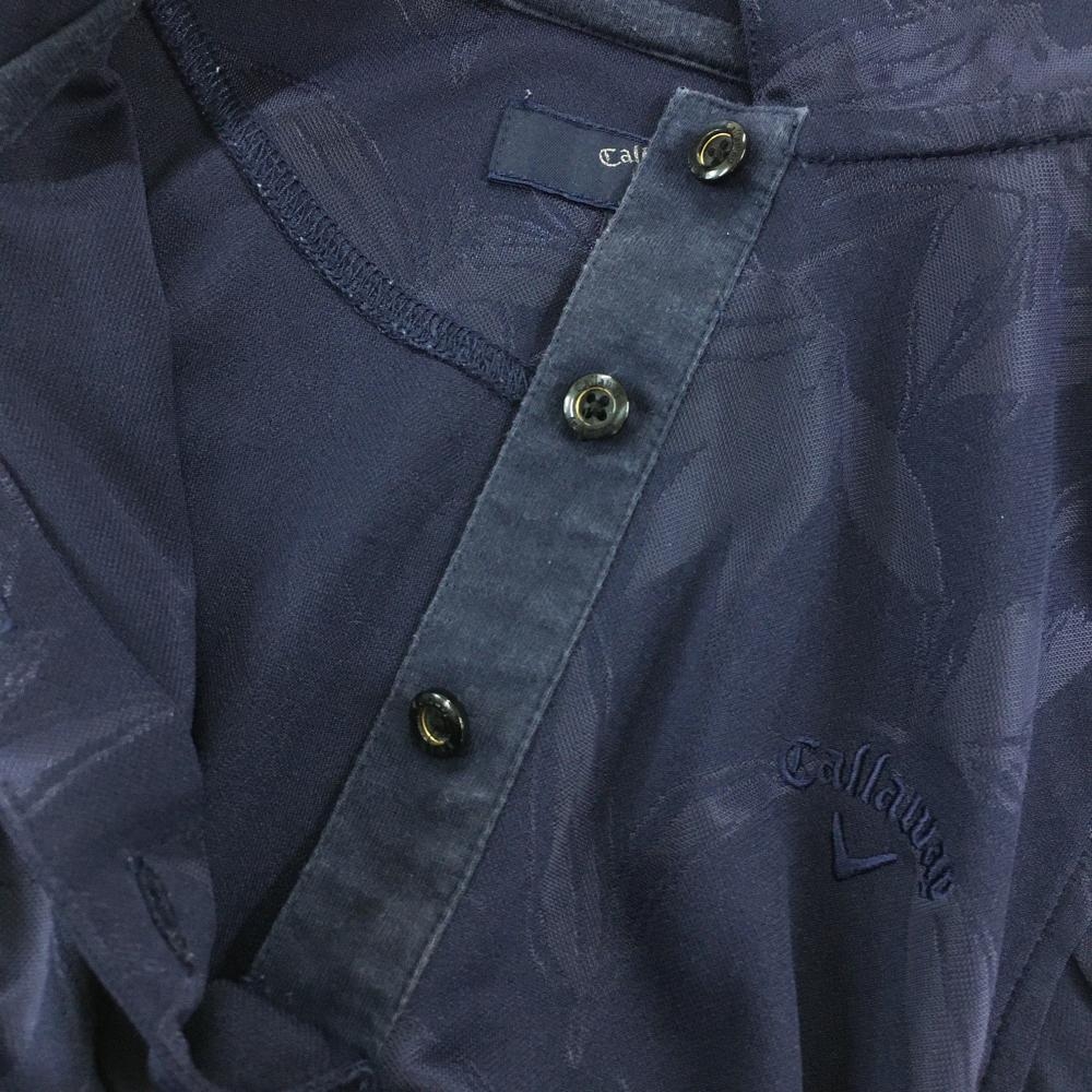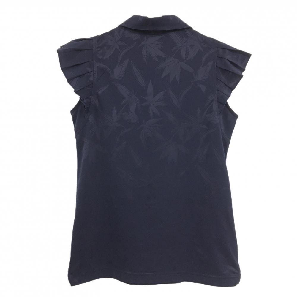 キャロウェイ ノースリーブポロシャツ ネイビー リーフ総柄地模様 フレンチスリーブ 袖フリル レディース L ゴルフウェア Callaway