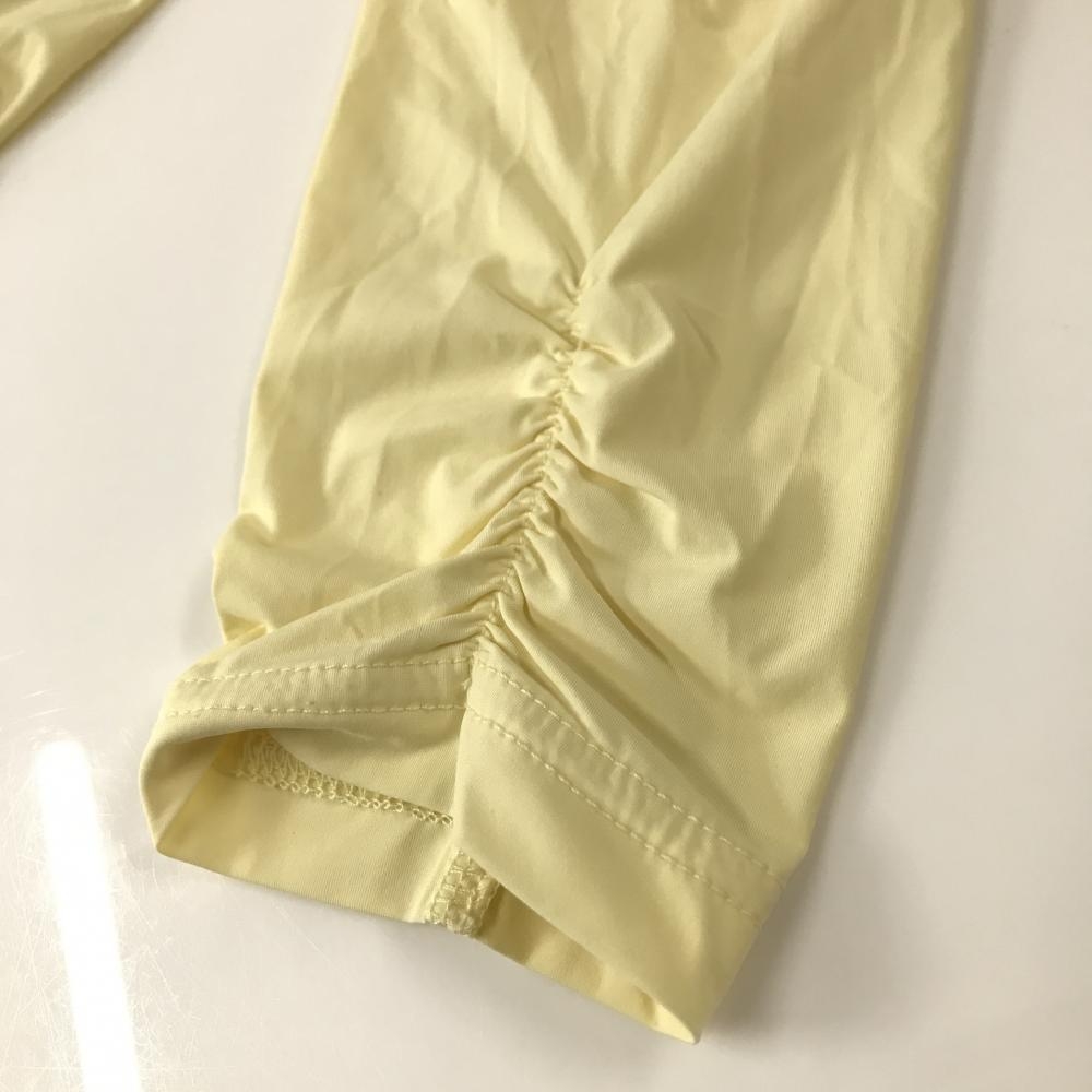 【超美品】ヒールクリーク ナイロンジャケット ライトイエロー 胸元ロゴ フード付き 薄手 レディース 40(M) ゴルフウェア Heal Creek