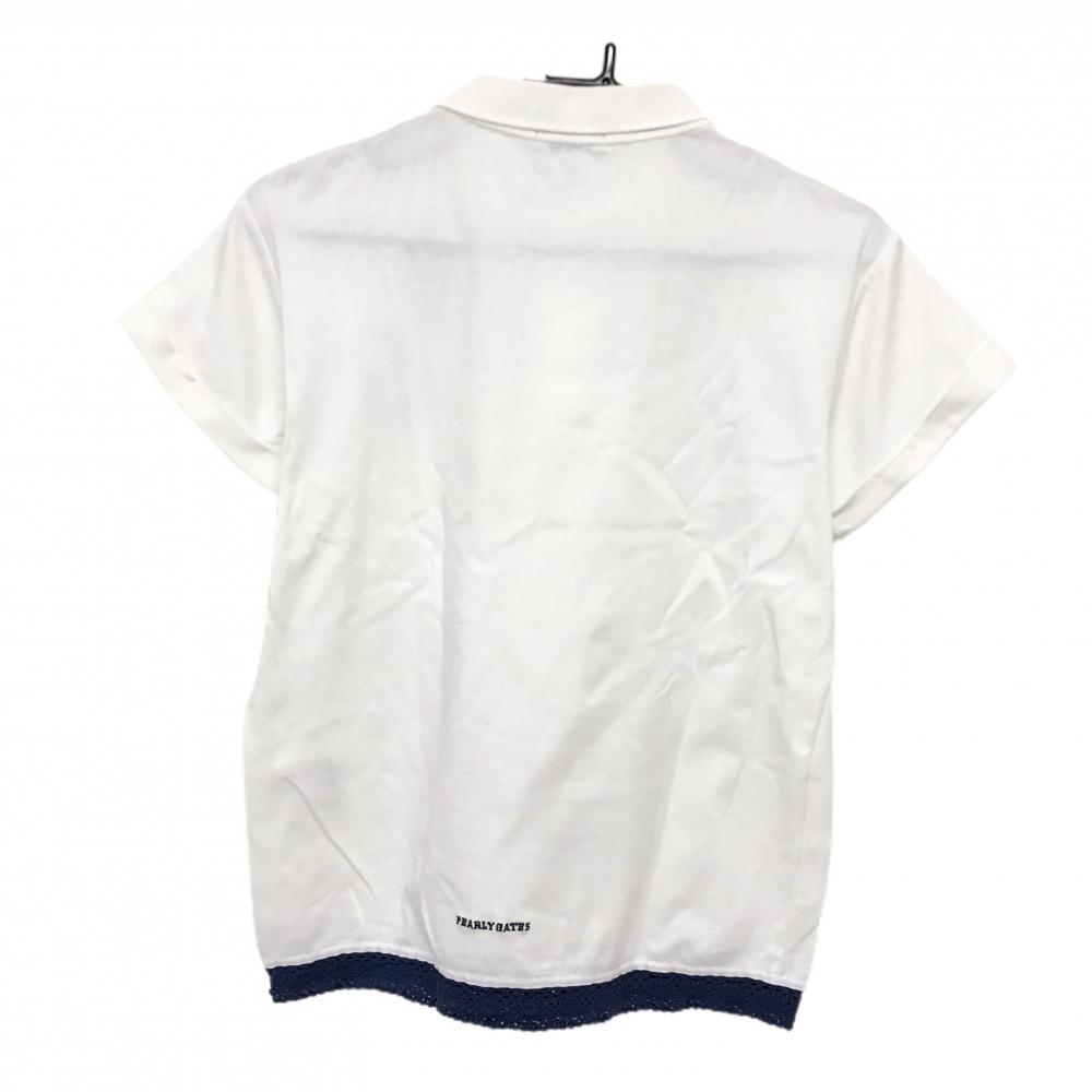 パーリーゲイツ 半袖ポロシャツ 白×ネイビー ロゴプリント レディース 0(S) ゴルフウェア PEARLY GATES