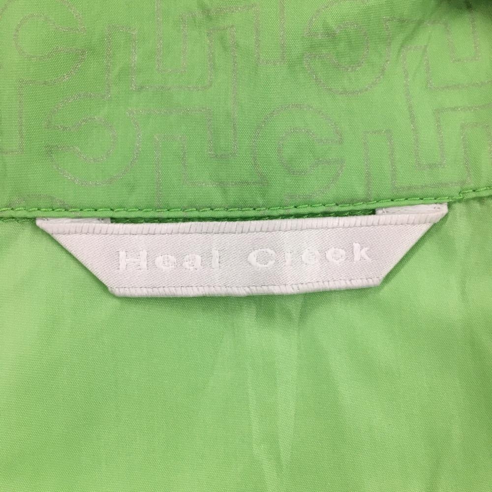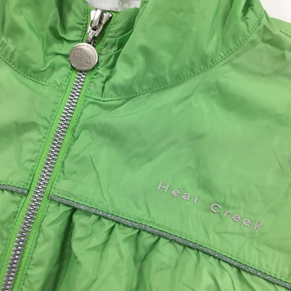 【美品】ヒールクリーク ジャケット ライトグリーン 胸元パイピングライン ロゴ刺しゅう 薄手 レディース 40(M) ゴルフウェア Heal Creek
