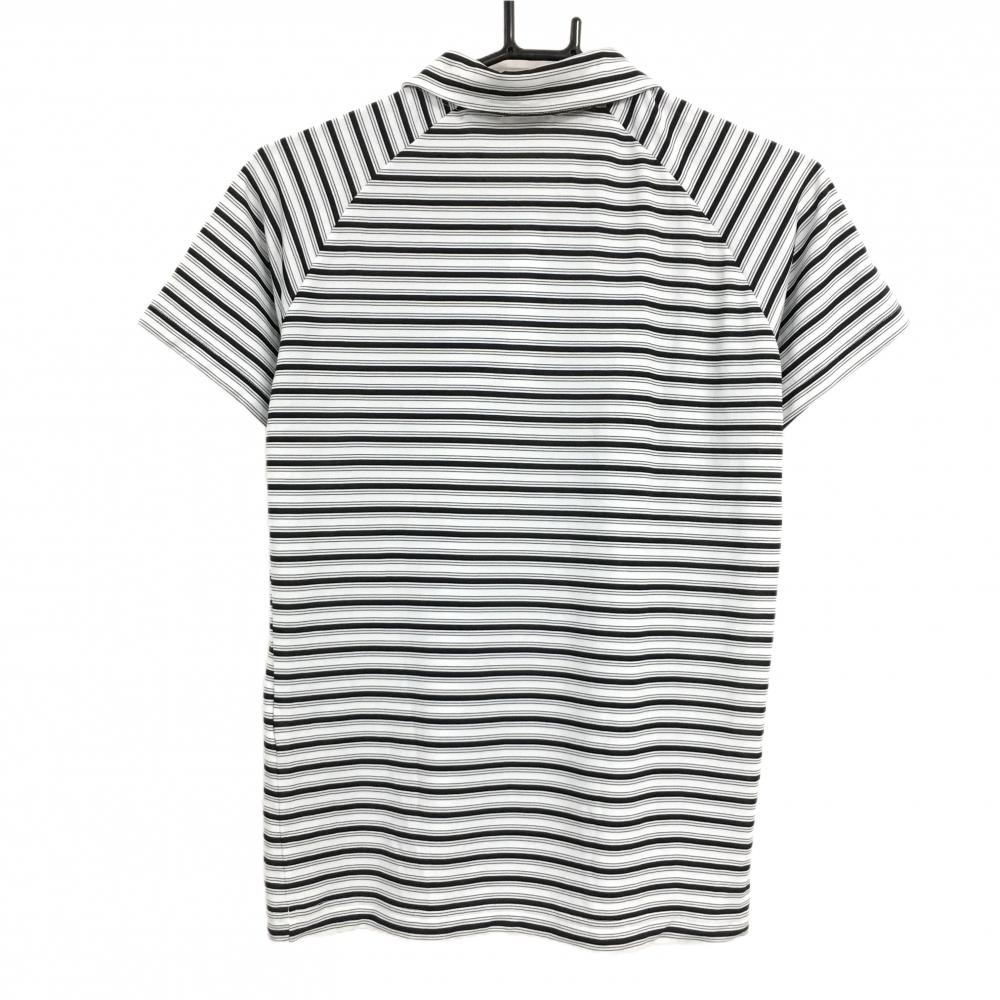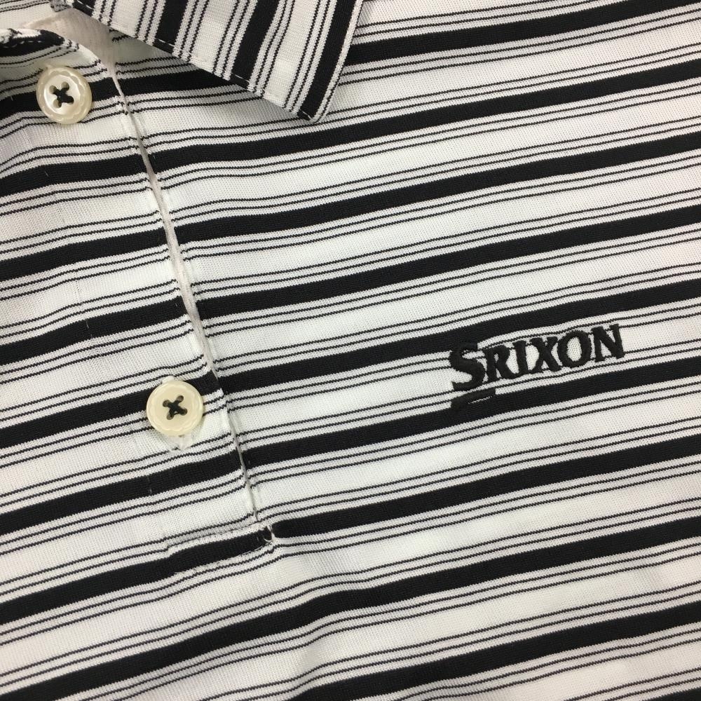 【超美品】スリクソン 半袖ポロシャツ 白×黒 ボーダー ロゴ刺しゅう レディース L ゴルフウェア SRIXON