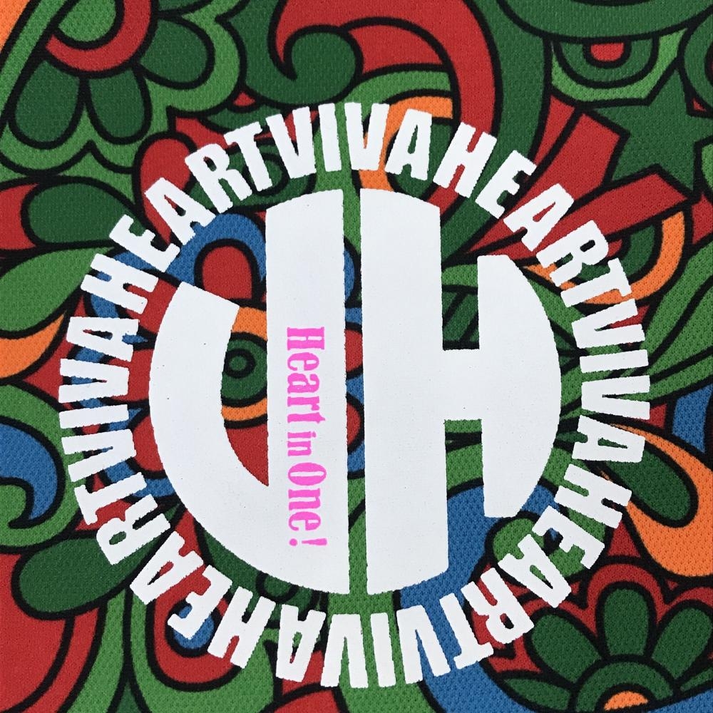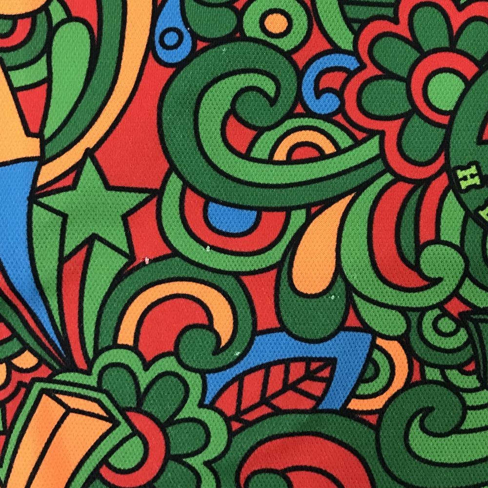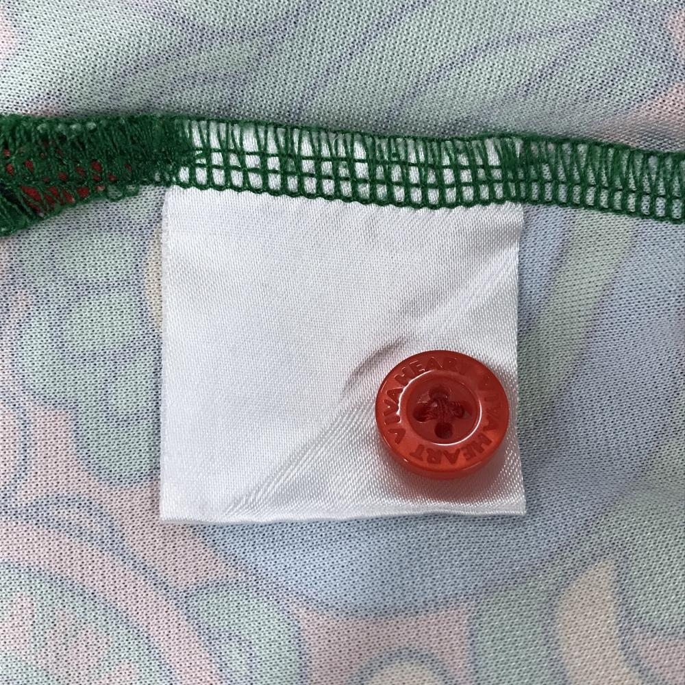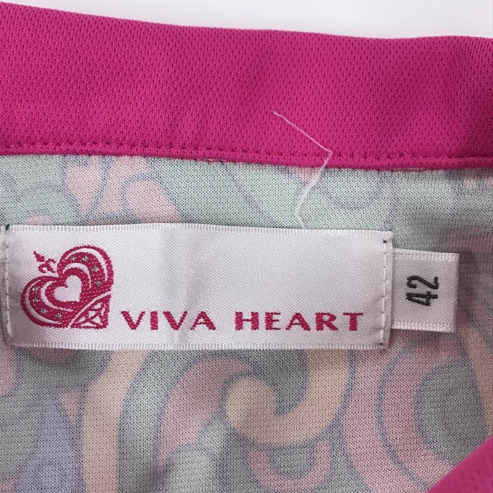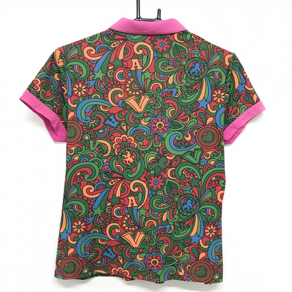 ビバハート 半袖ポロシャツ レッド×ピンク×グリーン 総柄 胸ロゴ レディース 42(L) ゴルフウェア VIVA HEART