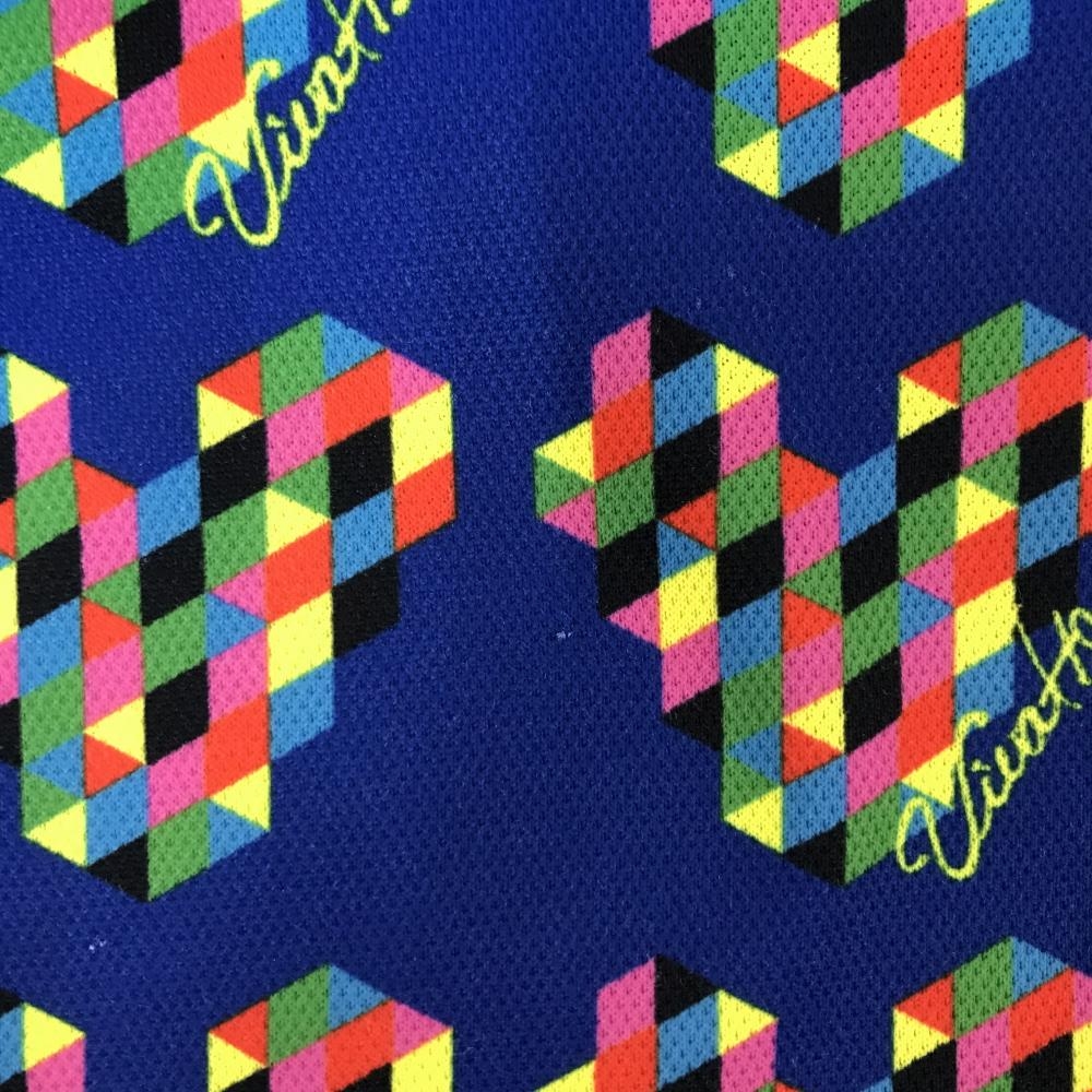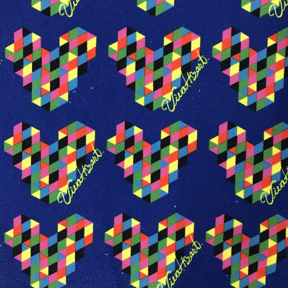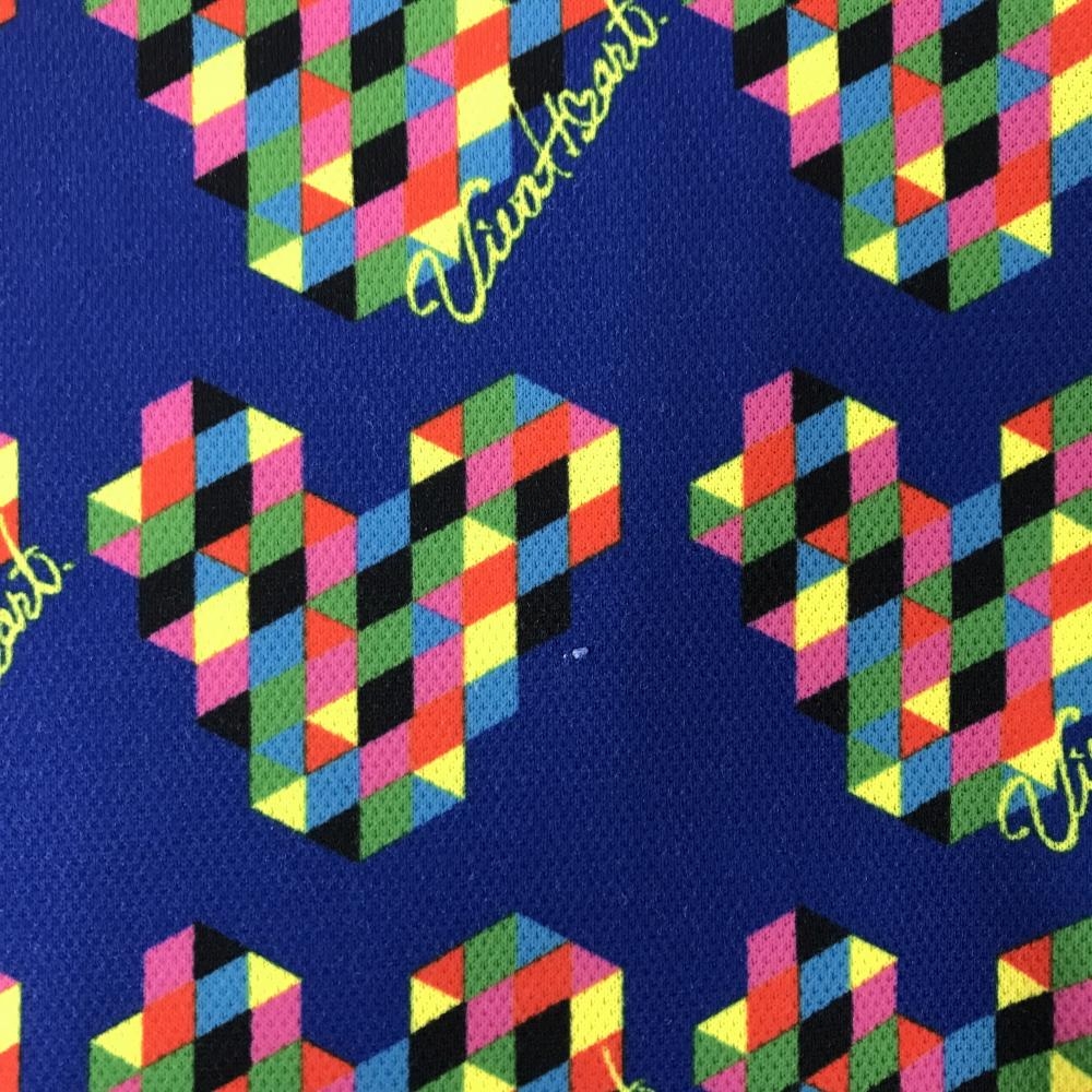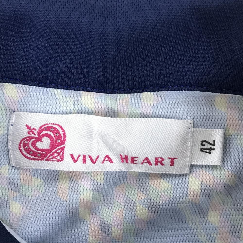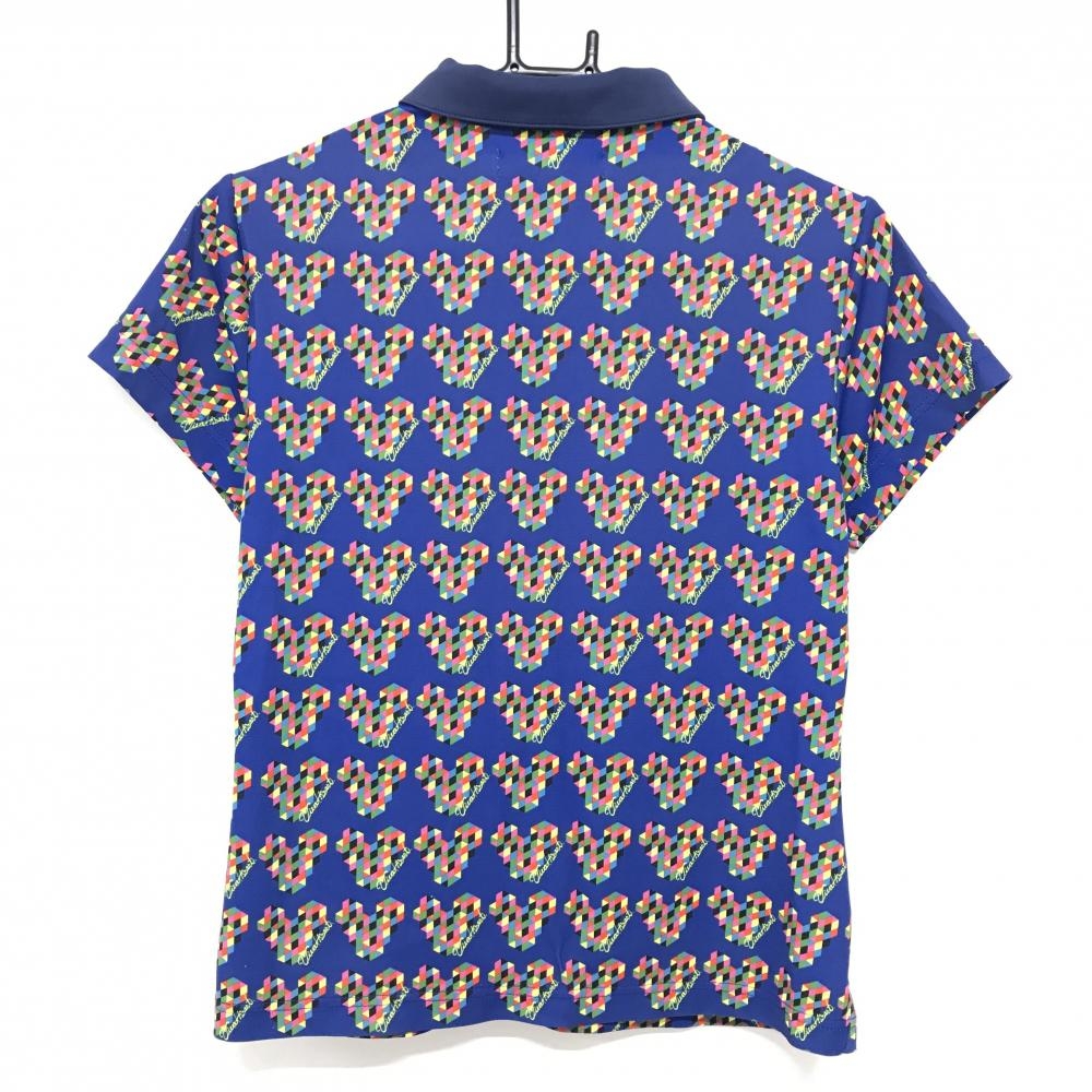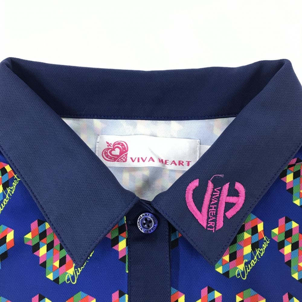 ビバハート 半袖ポロシャツ ネイビー×マルチカラー 総柄 ネックロゴ レディース 42(L) ゴルフウェア VIVA HEART