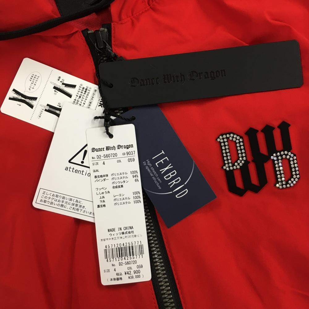 【新品】ダンスウィズドラゴン フード付ジップベスト レッド×黒 裏微起毛 レディース 4(XL) ゴルフウェア Dance With Dragon