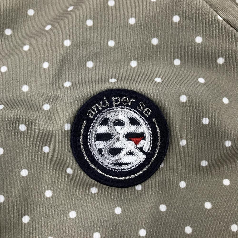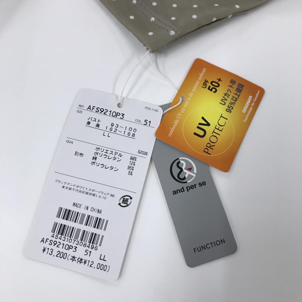 【新品】アンパスィ 長袖ハイネックシャツ ベージュ×白×ピンク ドット ビッグロゴ ストレッチ レディース LL ゴルフウェア and per se