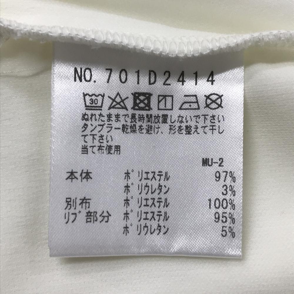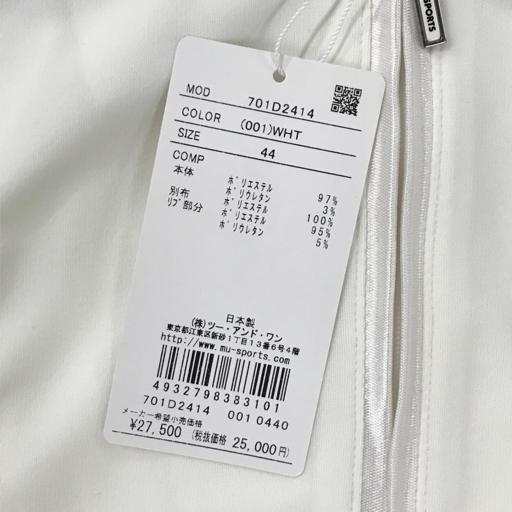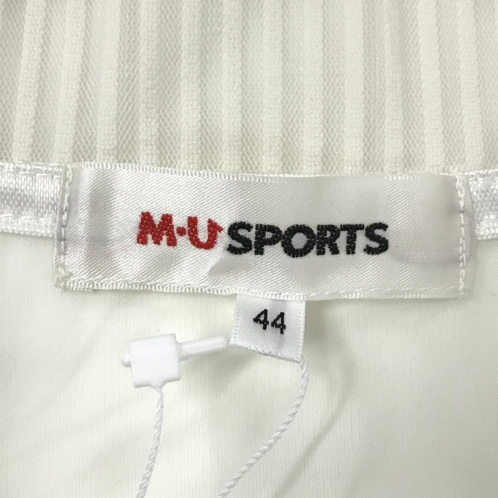 【新品】MUスポーツ 長袖ハイネックシャツ 白 ハーフジップ ネック・袖透け感ストライプ レディース 44(XL) ゴルフウェア M・U SPORTS