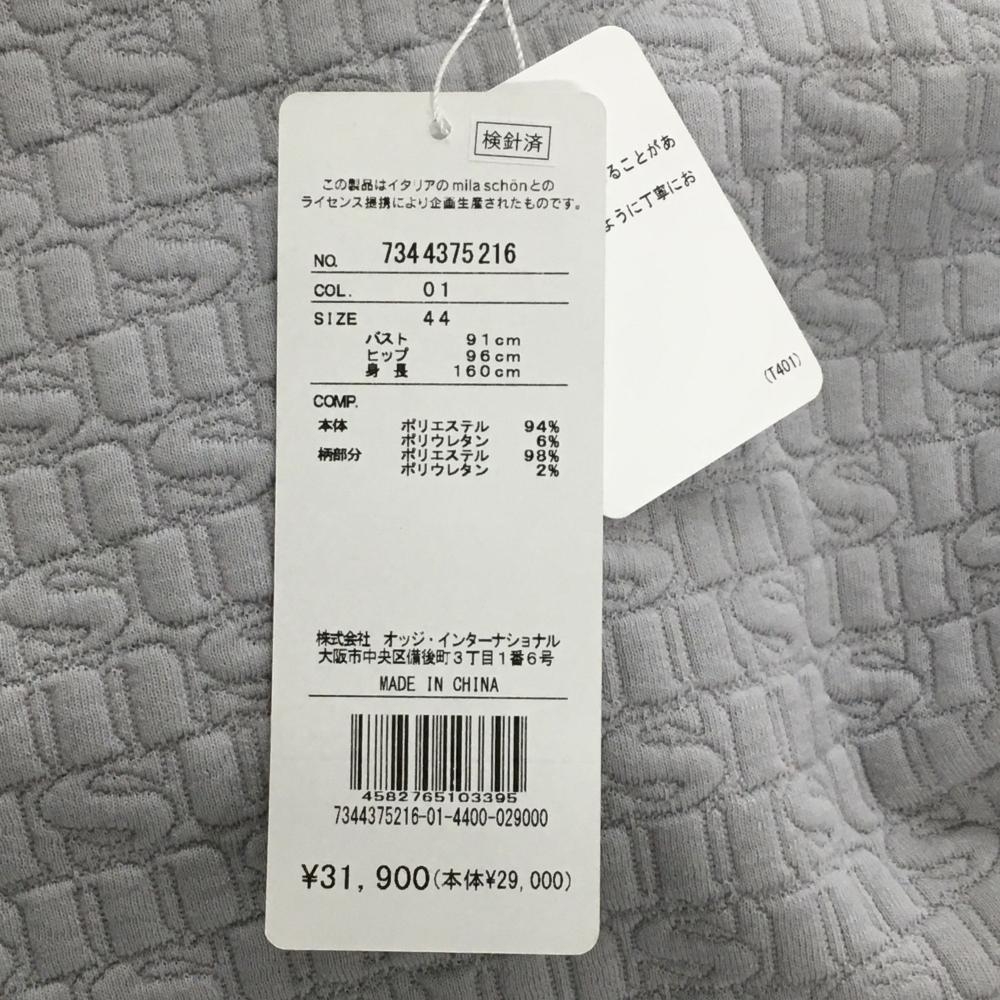 【新品】ミラショーンスポーツ パーカー グレー×白 凹凸生地 ロング丈 トレーナー レディース 44 ゴルフウェア mila schon