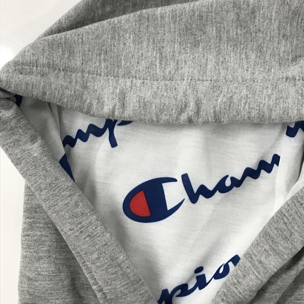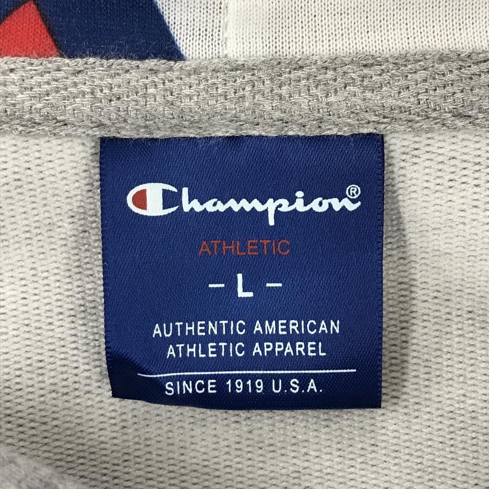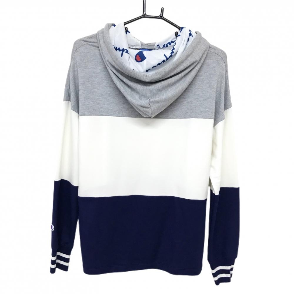 【超美品】チャンピオン パーカー グレー×白×ネイビー ロゴプリント トレーナー レディース L ゴルフウェア Champion
