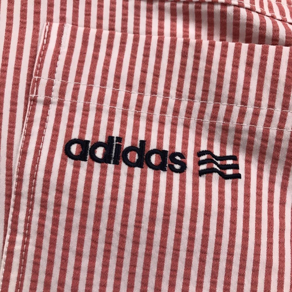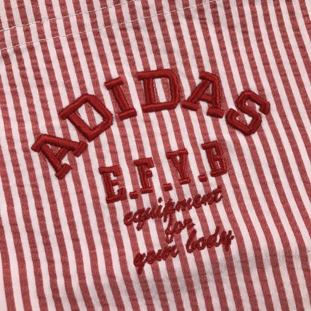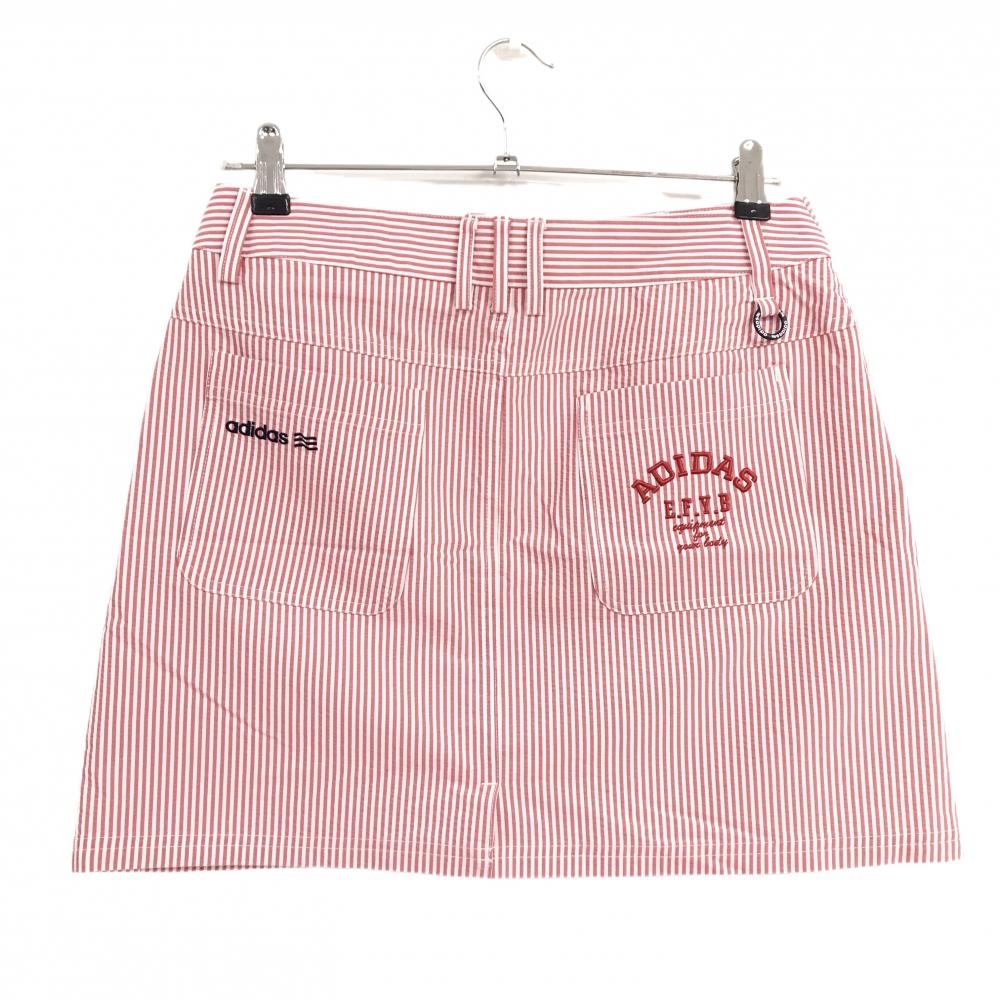 【超美品】アディダス スカート レッド×白 ストライプ サッカー生地 ロゴ刺しゅう レディース L/G ゴルフウェア adidas