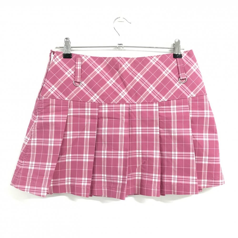 【美品】エドウィンゴルフ プリーツスカート ピンク×白 裾ロゴ レディース M ゴルフウェア EDWIN GOLF