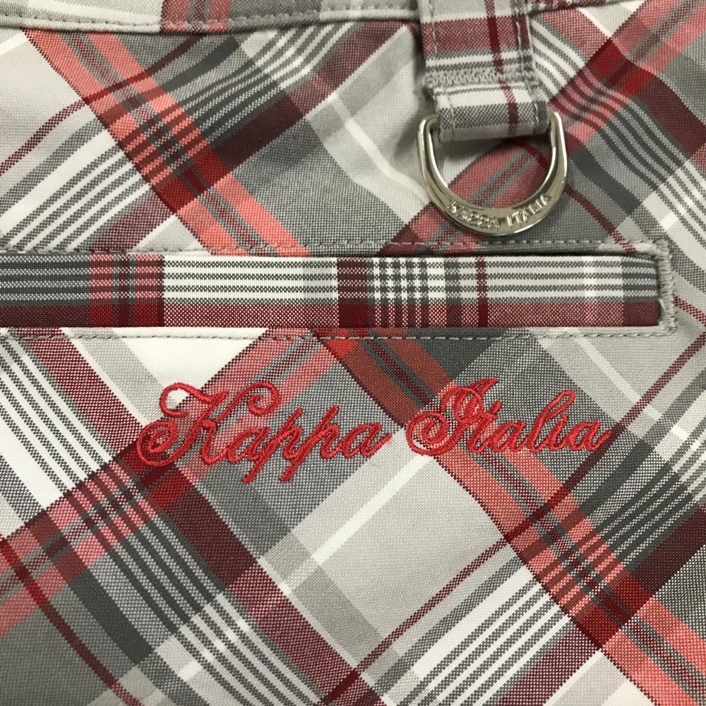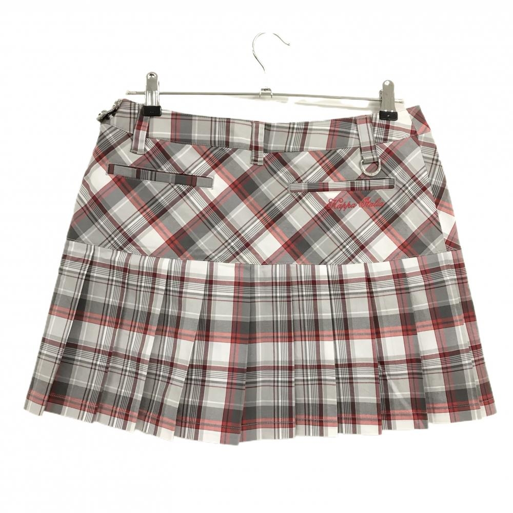 【超美品】カッパ プリーツスカート グレー×レッド チェック柄 ロゴ刺しゅう レディース 11 ゴルフウェア Kappa