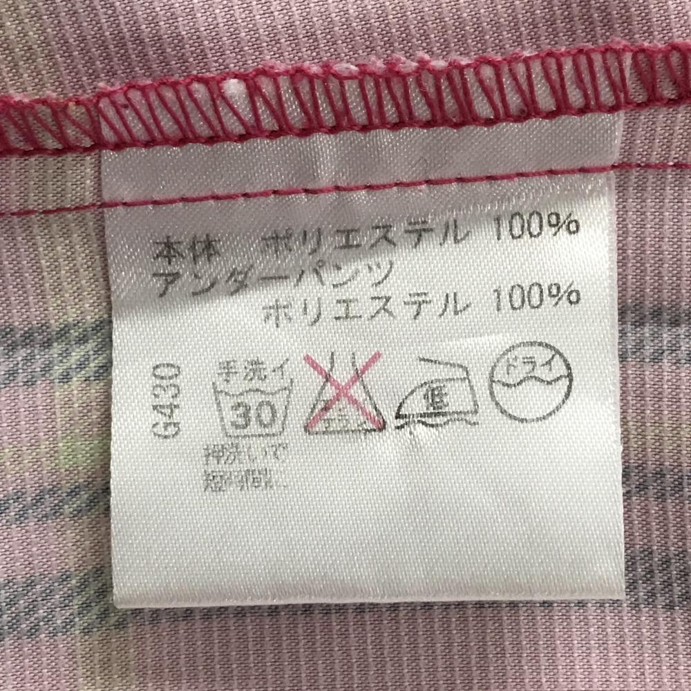 【超美品】ビバハート スカート ピンク×ライトグリーン チェック柄 裾フリル レディース 40(M) ゴルフウェア VIVA HEART