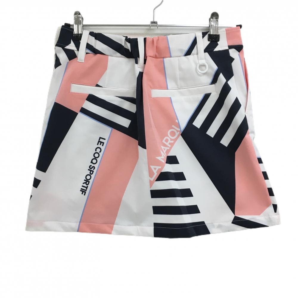 【超美品】ルコックゴルフ スカート 白×ピンク×ネイビー 総柄 レディース 9 ゴルフウェア 2023年モデル le coq sportif
