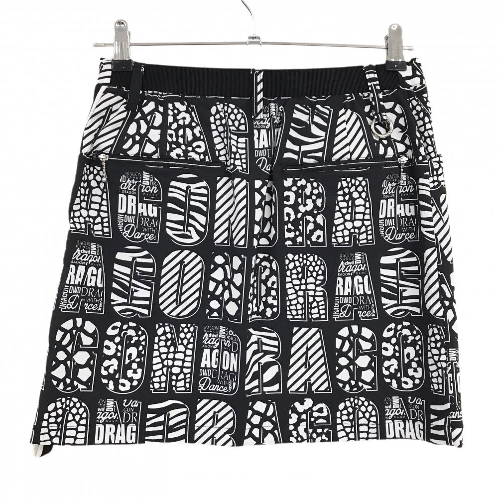 【超美品】ダンスウィズドラゴン スカート 黒×白 ロゴアニマル柄 レディース 2(M) ゴルフウェア Dance With Dragon