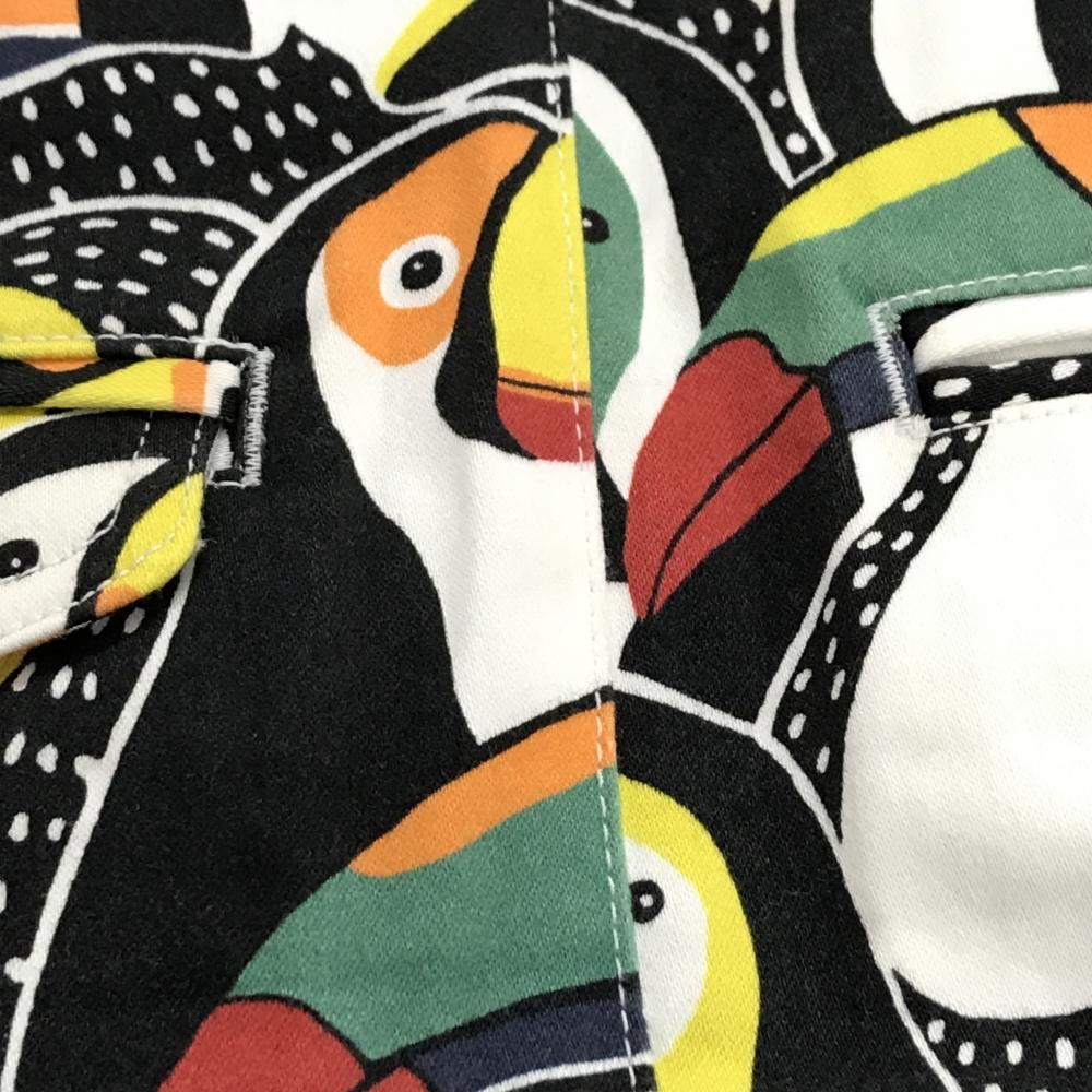 【美品】ジャックバニー スカート 白×マルチカラー 鳥総柄 ストレッチ レディース 0(S) ゴルフウェア Jack Bunny