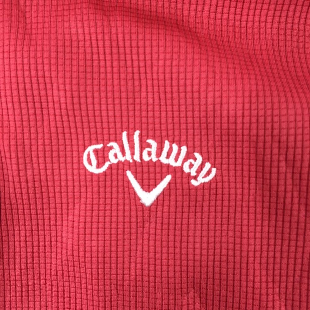 【超美品】キャロウェイ 半袖ポロシャツ レッド 格子柄地模様 ロゴ白 レディース LL ゴルフウェア Callaway