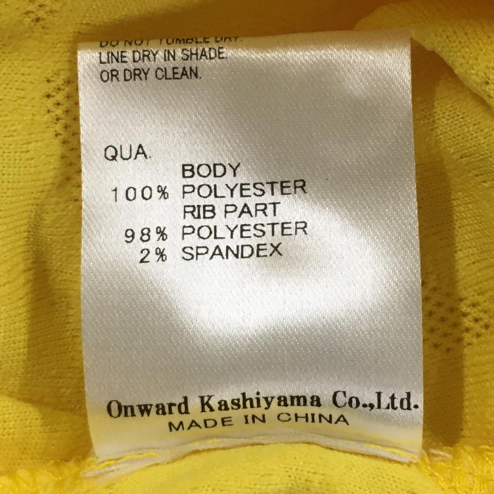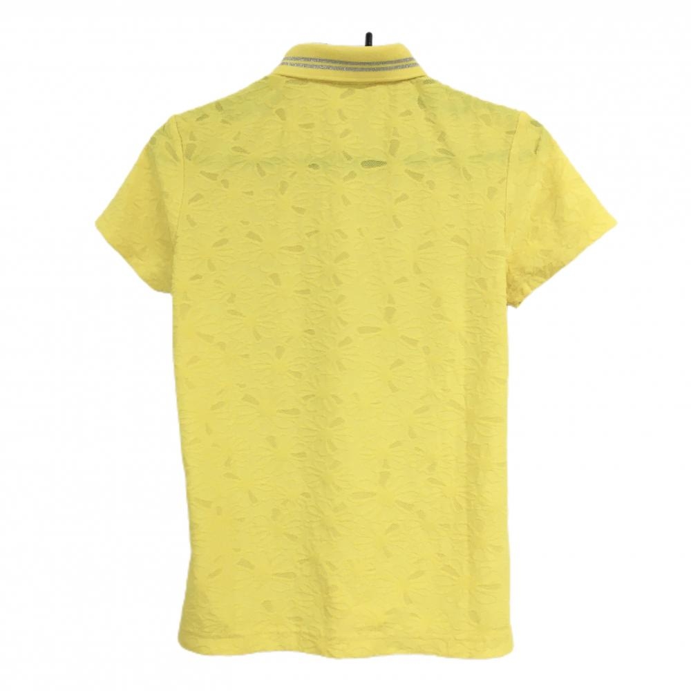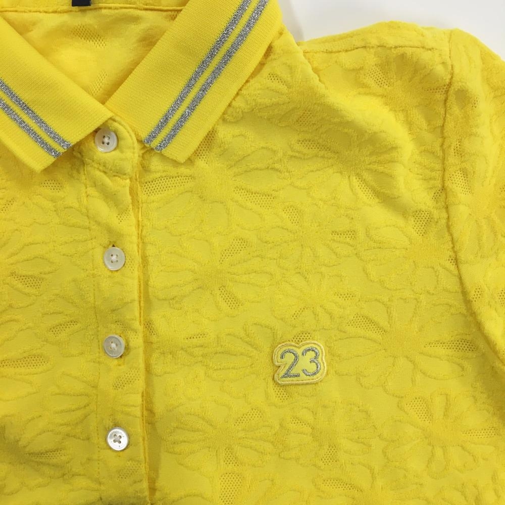 【超美品】23区ゴルフ 半袖ポロシャツ イエロー 花柄織生地 ロゴワッペン レディース I(M) ゴルフウェア 23区