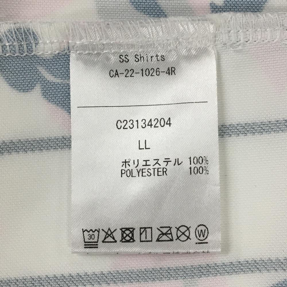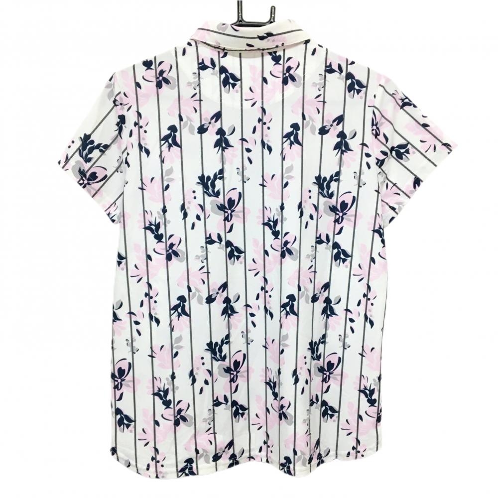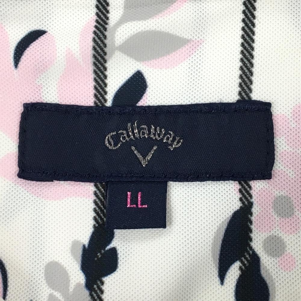 キャロウェイ 半袖ポロシャツ 白×ライトピンク×ネイビー 花柄 ストライプ レディース LL ゴルフウェア Callaway