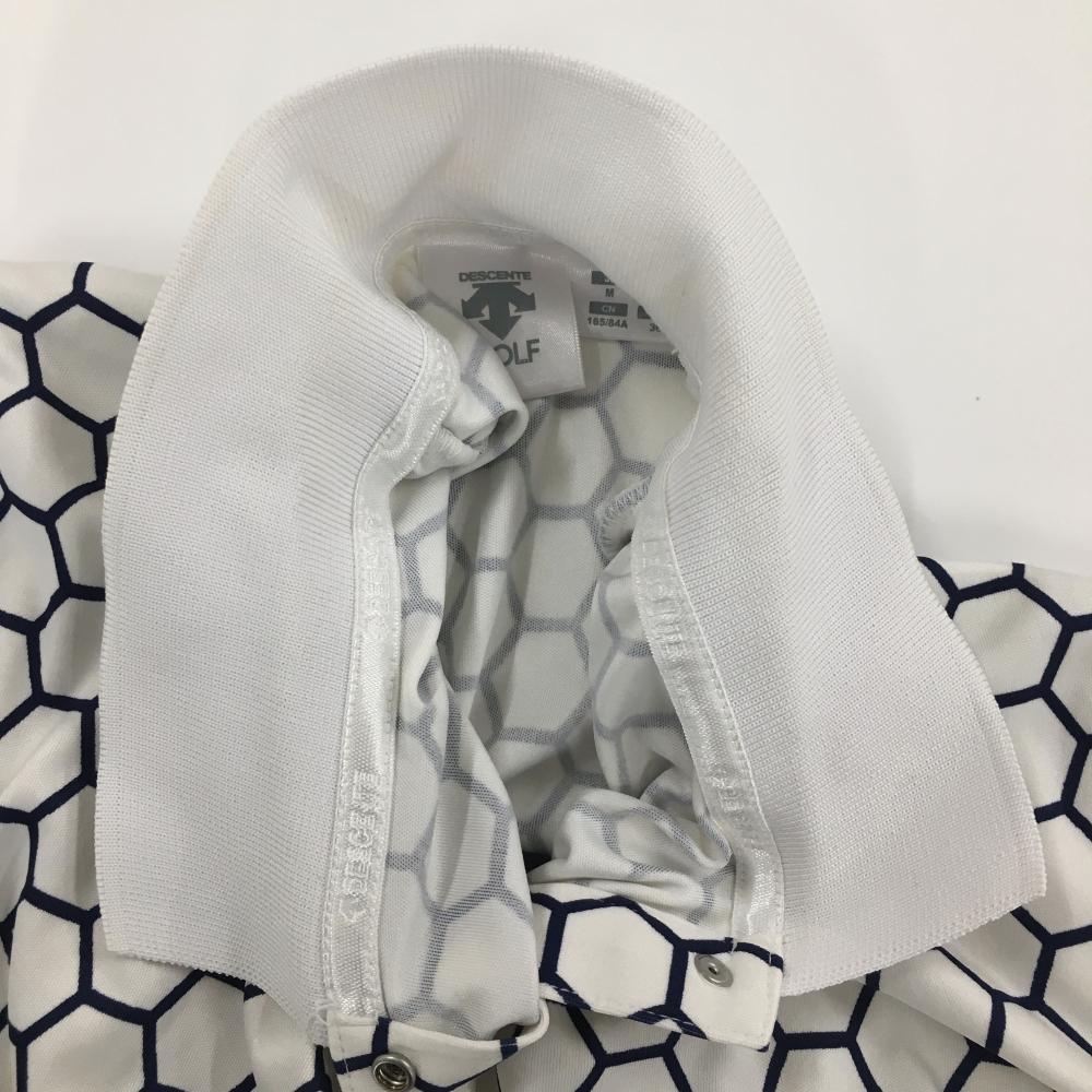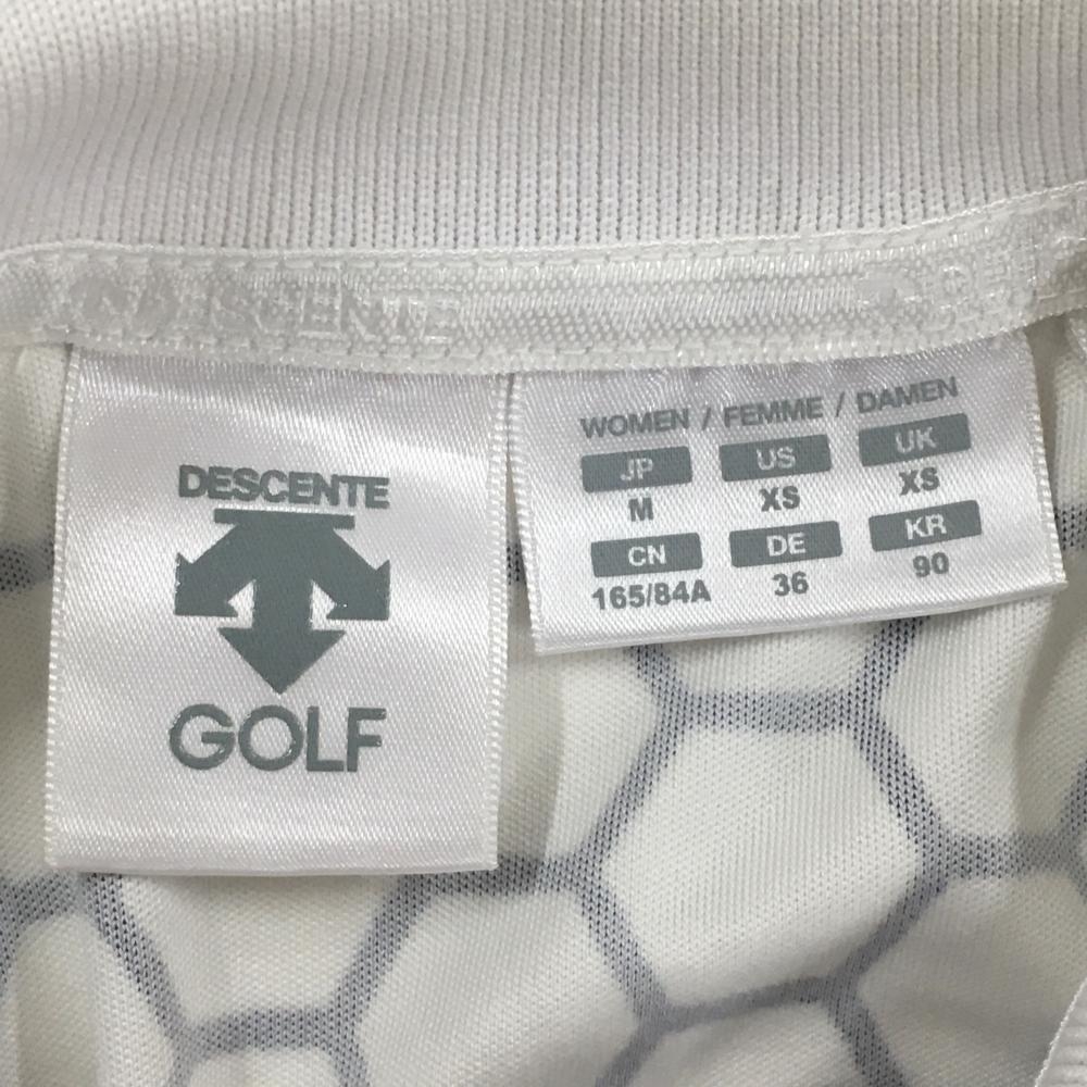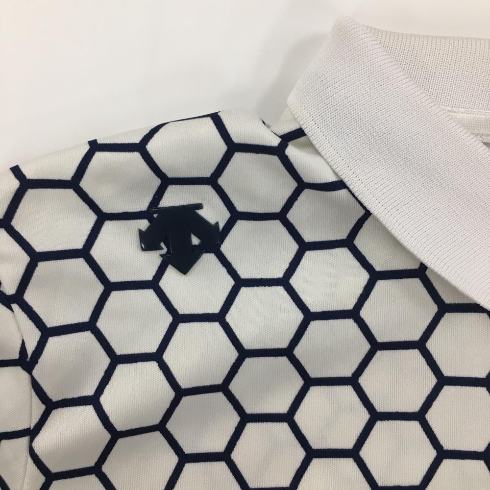 デサントゴルフ 半袖ポロシャツ 白×ネイビー ヘキサゴン柄 中田英寿 レディース M ゴルフウェア DESCENTE