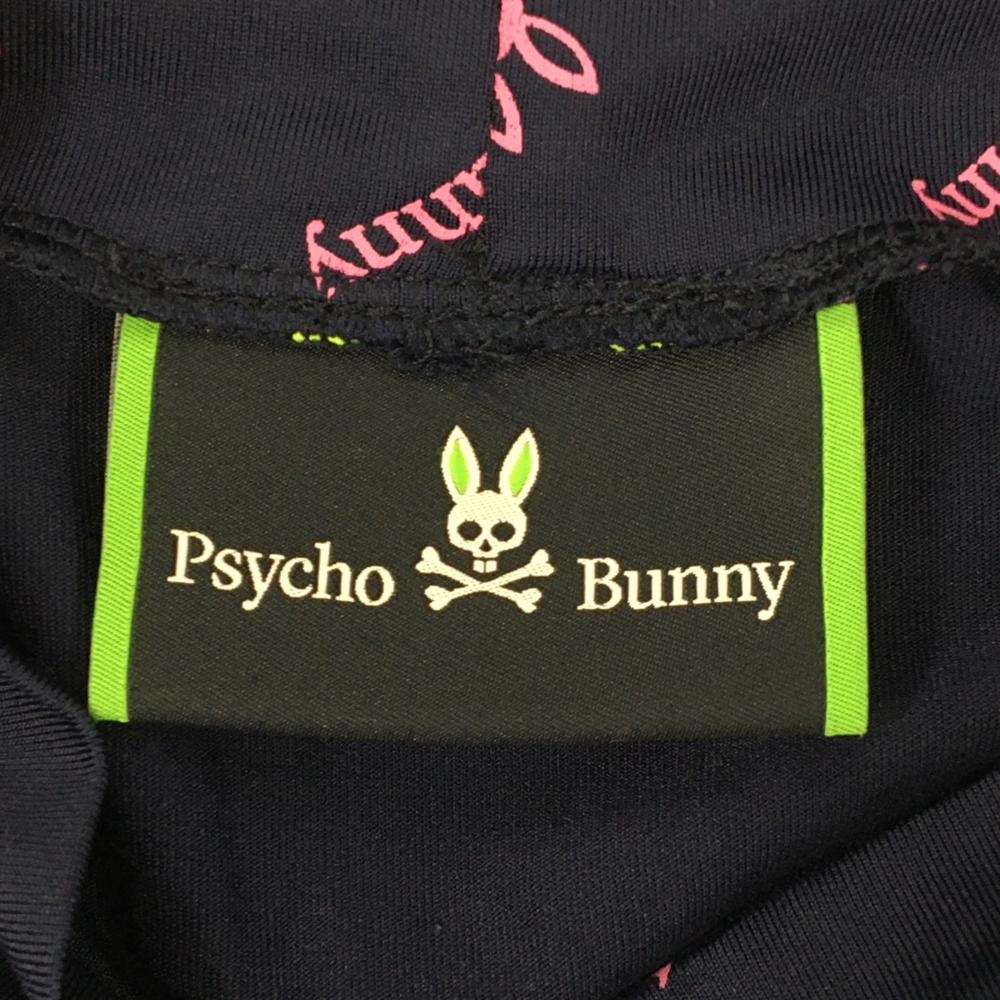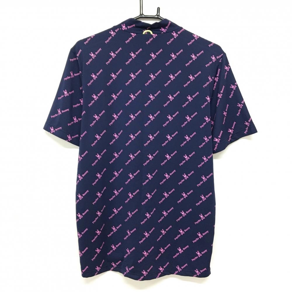 【超美品】サイコバニー 半袖ハイネックシャツ ネイビー×ピンク ロゴ総柄 メンズ XL ゴルフウェア Psycho Bunny