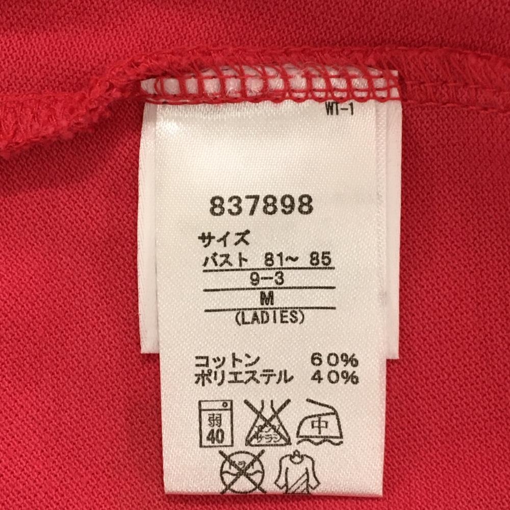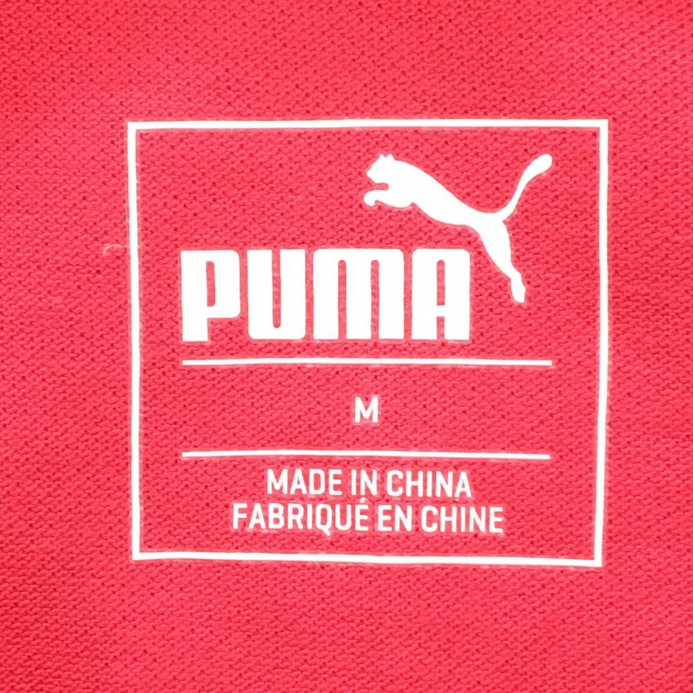 【美品】プーマ 半袖スキッパーシャツ ピンク ロゴ刺しゅう 前立てボーダー 袖口リボン レディース M ゴルフウェア PUMA